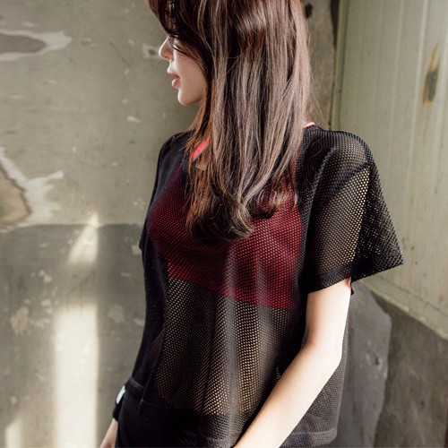 BikiniFC🧸 (S-XL) SB173 มี2สี เสื้อคลุมตาข่าย คลุมชุดว่ายน้ำ ชุดออกกำลังกาย โอเวอร์ไซส์ แขนสั้น เสื้อนอก