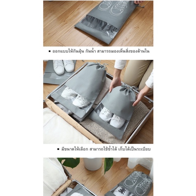 ถุงเก็บรองเท้า (แแบบหูรูด) ถุงใส่ของเอนกประสงค์ กันฝุ่น กันเปียก กระเป๋ารองเท้า แบบพกพา