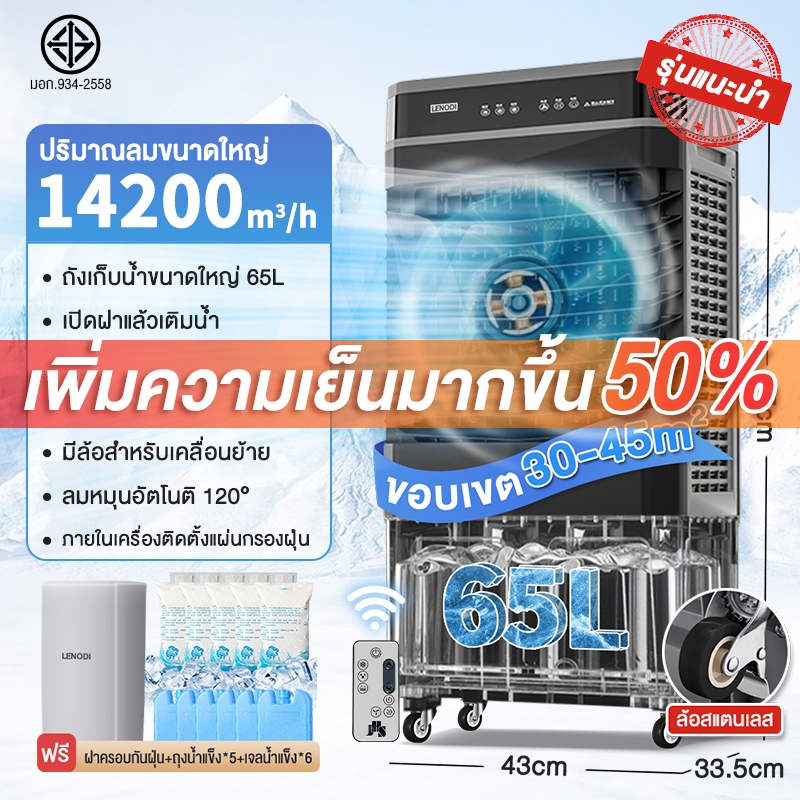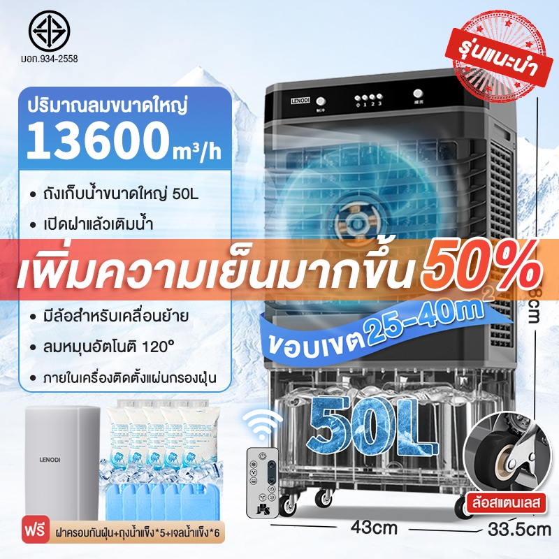 LENODI พัดลมไอเย็น ทำความเย็น Air Cooler ขนาดความจุ 40,50 ลิตร พัดลมแอร์ พัดลมไอน้ำ แอร์พกพา