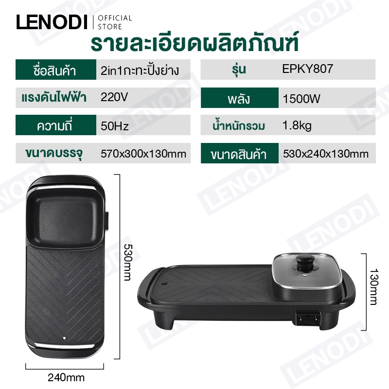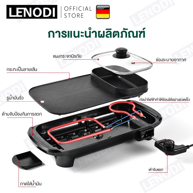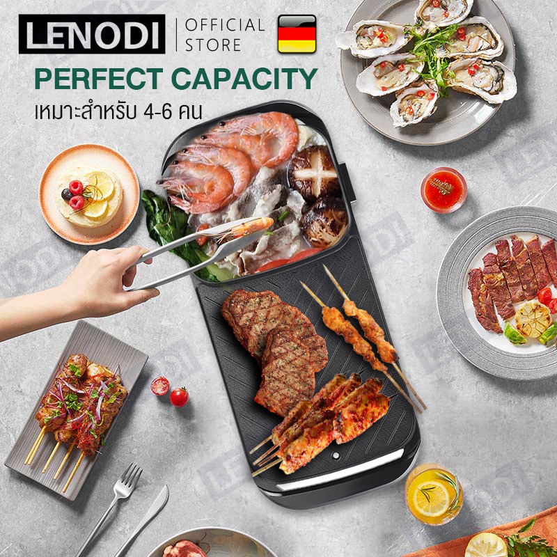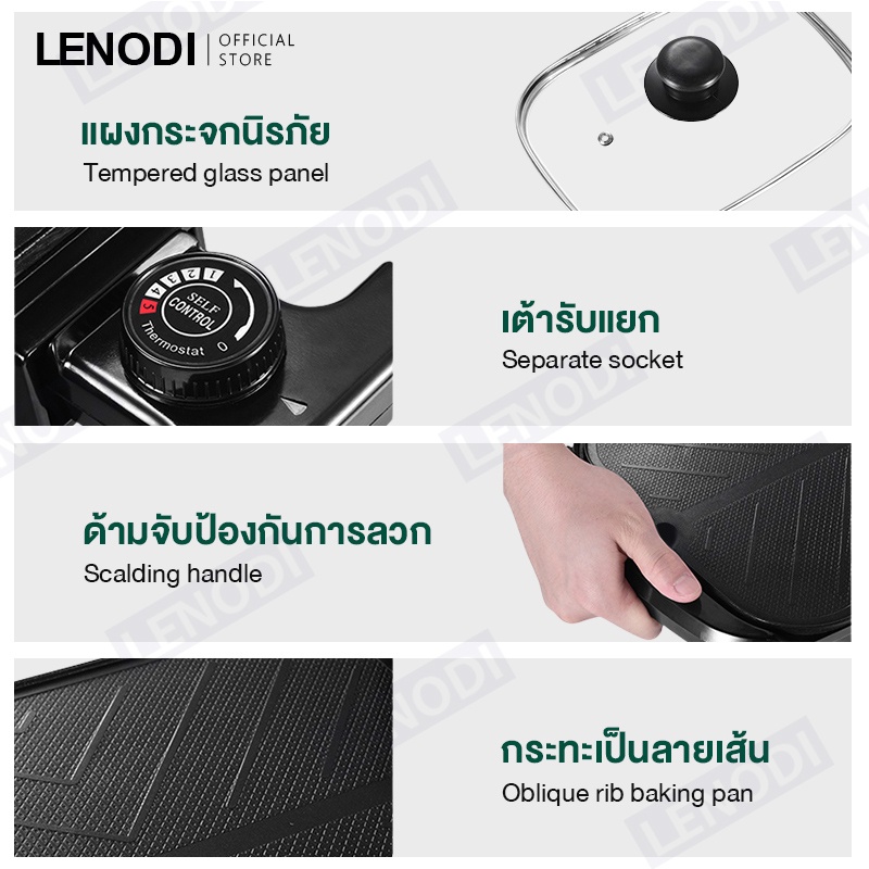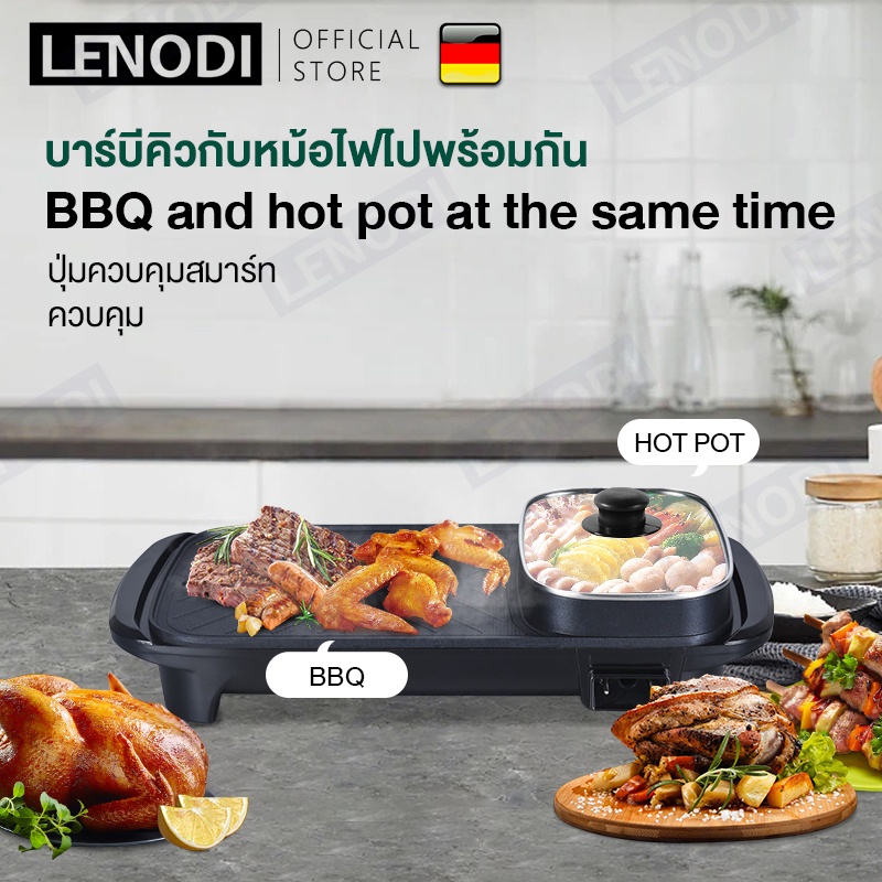 LENODI มัลติฟังก์ชั่ชาบูบูหม้อไฟบาร์บีคิวแบบบูรณาการหม้อไฟฟ้าในครัวเรือนถาดอบเตาอบแยกขนาดใหญ่อาวุธไร้ควัน
