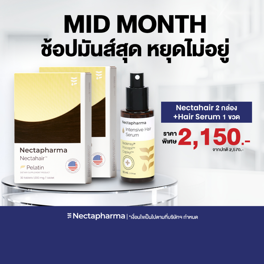 [Full Set] Nectapharma Intensive Serum + Nectahair Vitamin Pelatin เซรั่มและวิตามิน ช่วยผมงอกใหม่ ลดปัจจัยผมร่วง