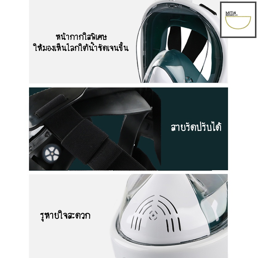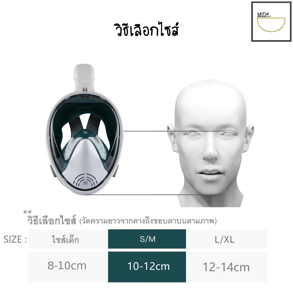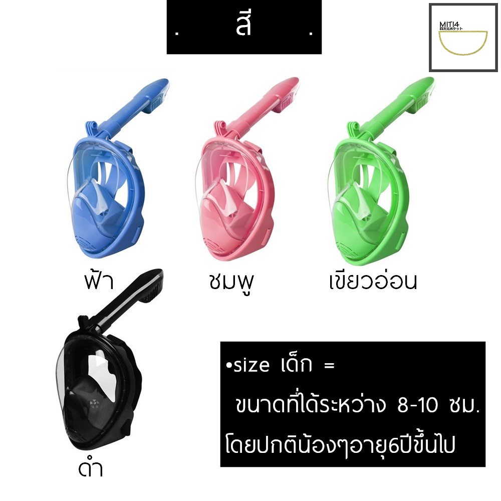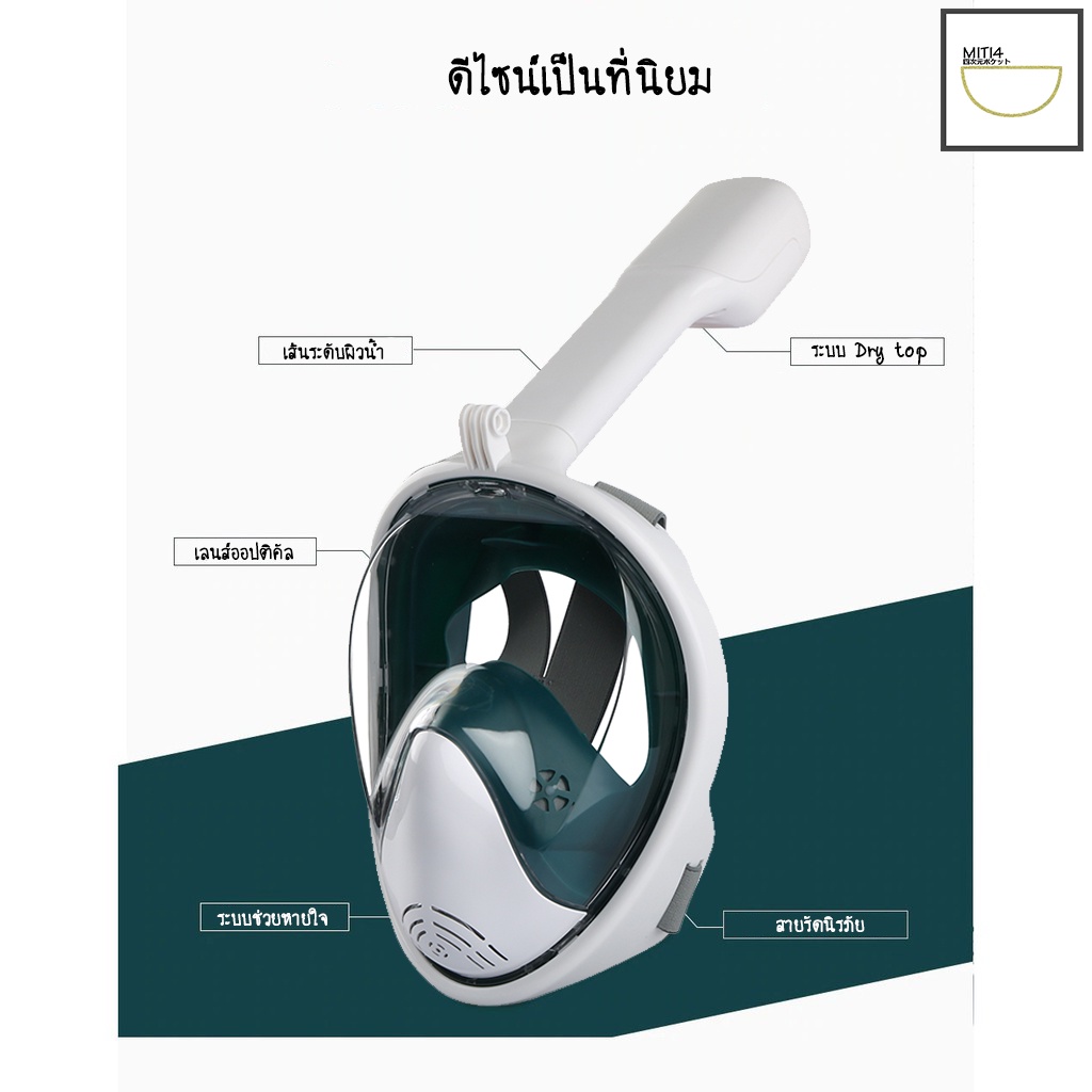 MITI4 พร้อมส่ง หน้ากากดำน้ำ เกรดคุณภาพ แบบเต็มหน้า ไม่ต้องคาบ ท่อหายใจ พร้อมขาติดกล้อง หลายไซส์ ผู้ใหญ่ เด็ก COD ST036