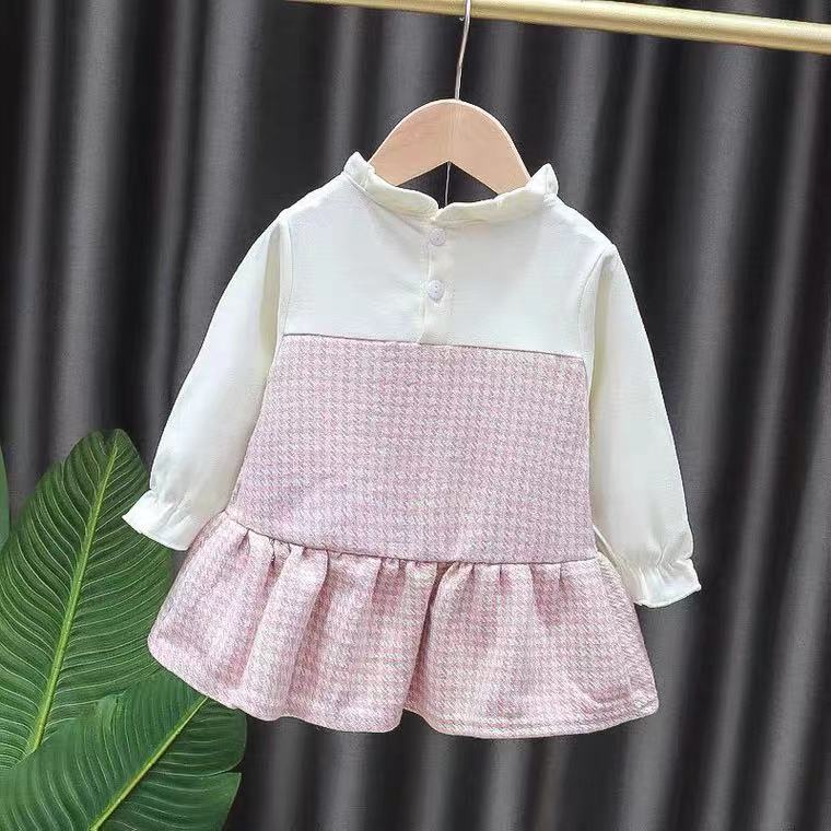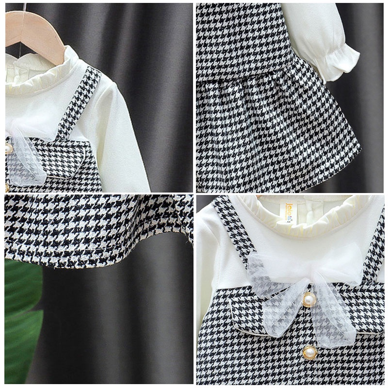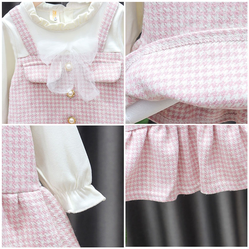 ชุดเดรสเด็กผู้หญิง แขนยาว คอปกกลีบดอกไม้ ประดับโบ สองชิ้น สําหรับเด็กผู้หญิง 1-7 ปี
