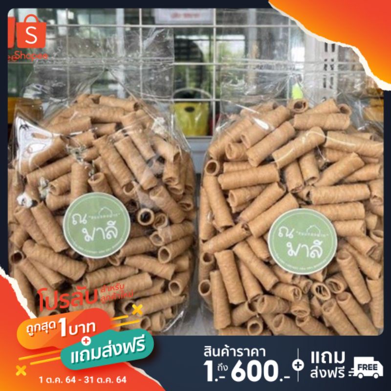 [ลูกค้าใหม่1บาท] ทองม้วน รสกะทิ แบบ 1 กิโล ร้านขนมผิงมาลี