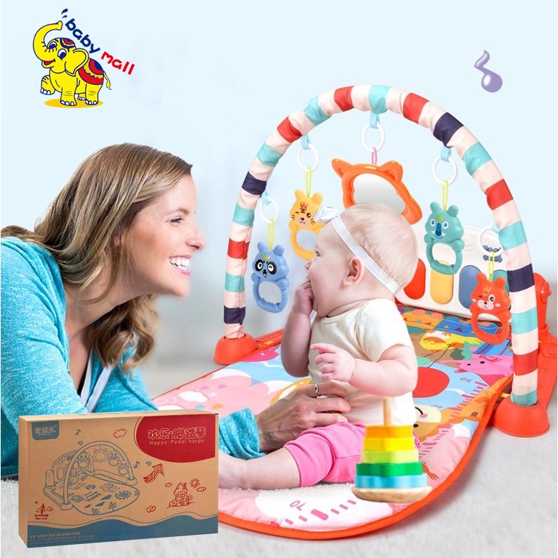 🔥พร้อมส่ง แถมฟรีถ่าน🔥 เพลยิมเด็ก เพลยิมเปียโน เพลยิมโมบาย สีพาสเทลน่ารัก มีไฟ มีเสียงดนตรี โมบายเพลยิมดนตรีที่นอนเด็ก