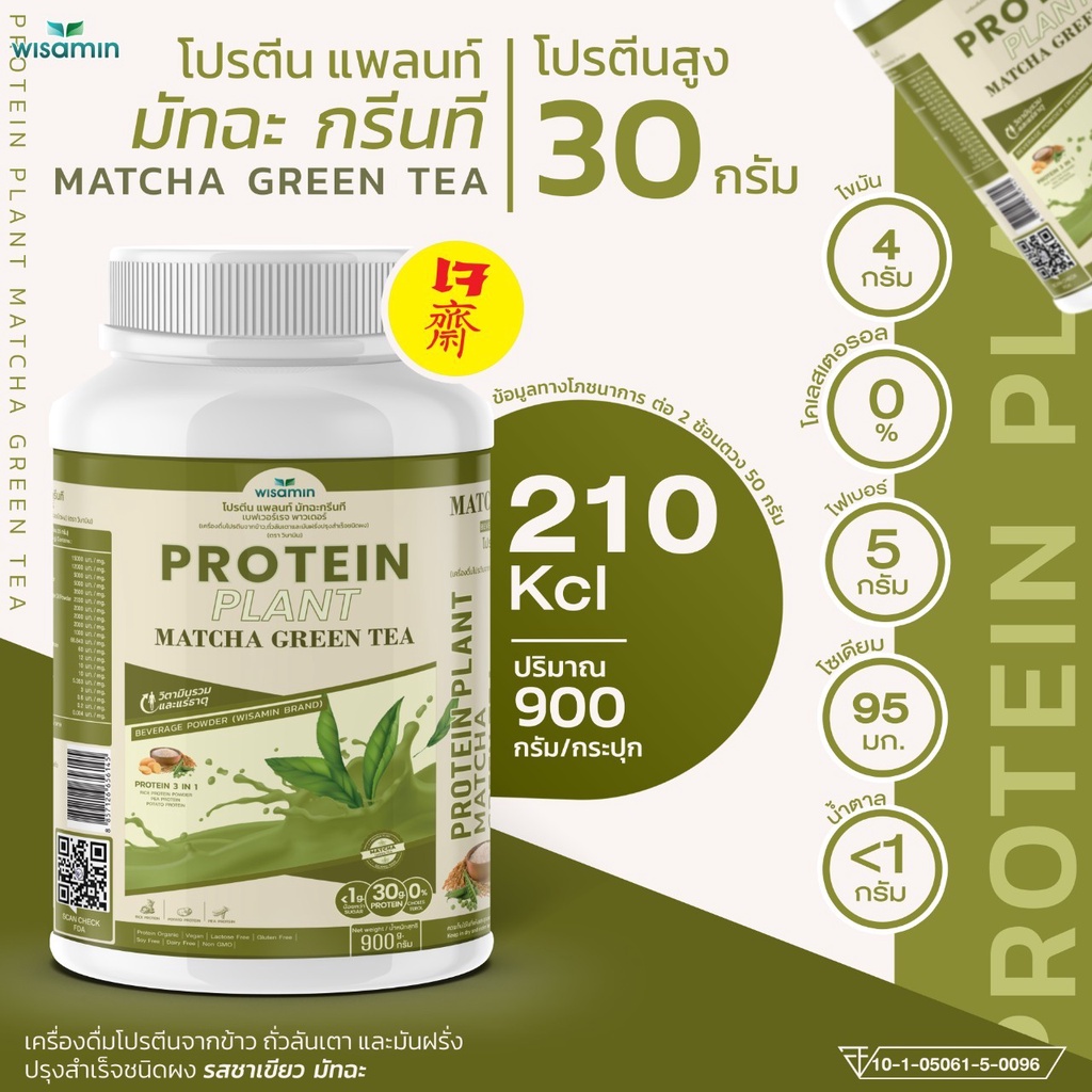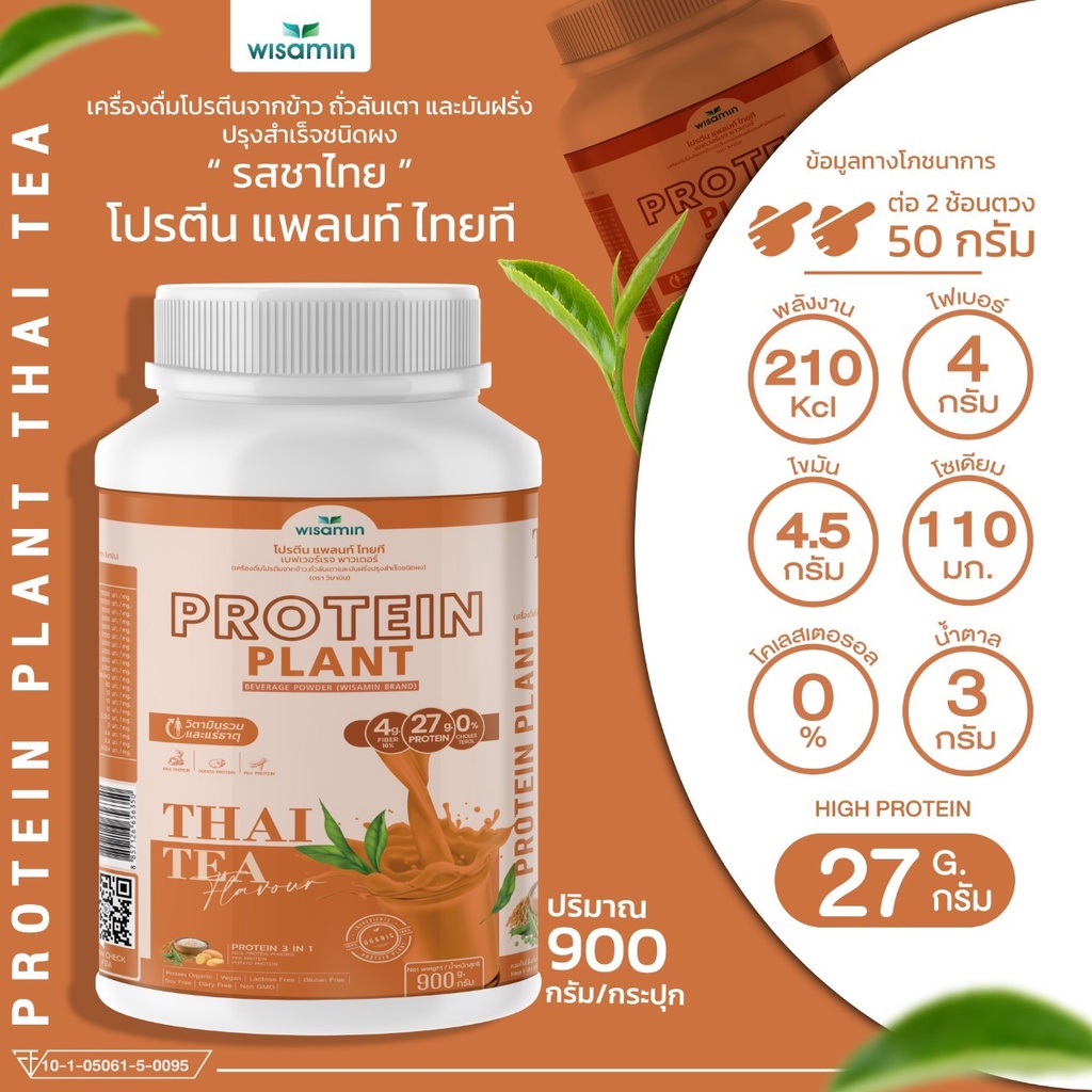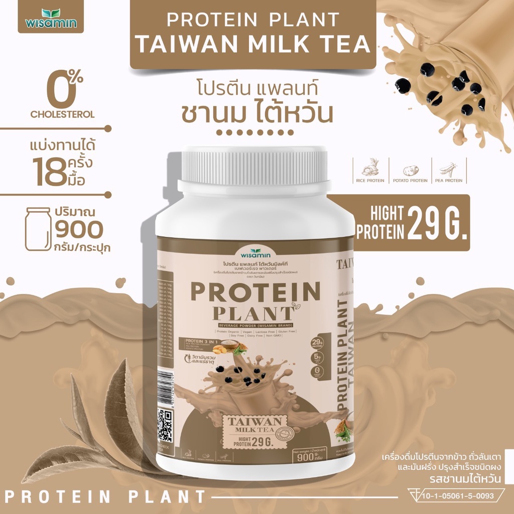 PROTEIN PLANT สูตร 1 โปรตีนแพลนท์ 10 รสชาติ ขนาด 2 ปอนด์ (ตราวิษามิน) โปรตีนจากพืช ออแกรนิค ปริมาณ 900 กรัม/กระปุก
