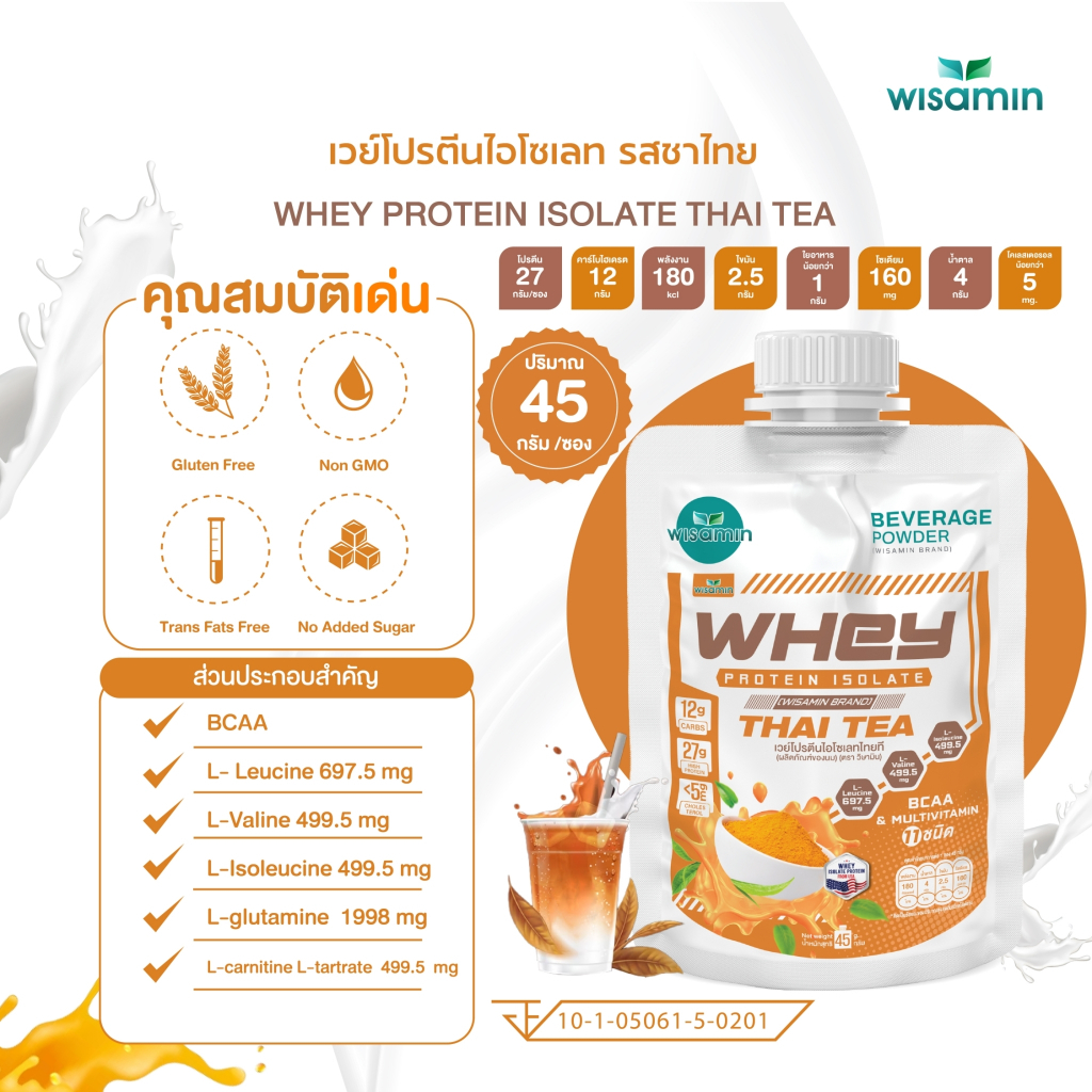 WHEY PROTEIN ISOLATE เวย์โปรตีน ไอโซเลท มี 11 รสชาติ (ชนิดซองชงดื่ม 45 กรัม/ซอง) เวย์โปรตีนชงดื่ม ปลอดกลูเตน ปราศจาก GMO