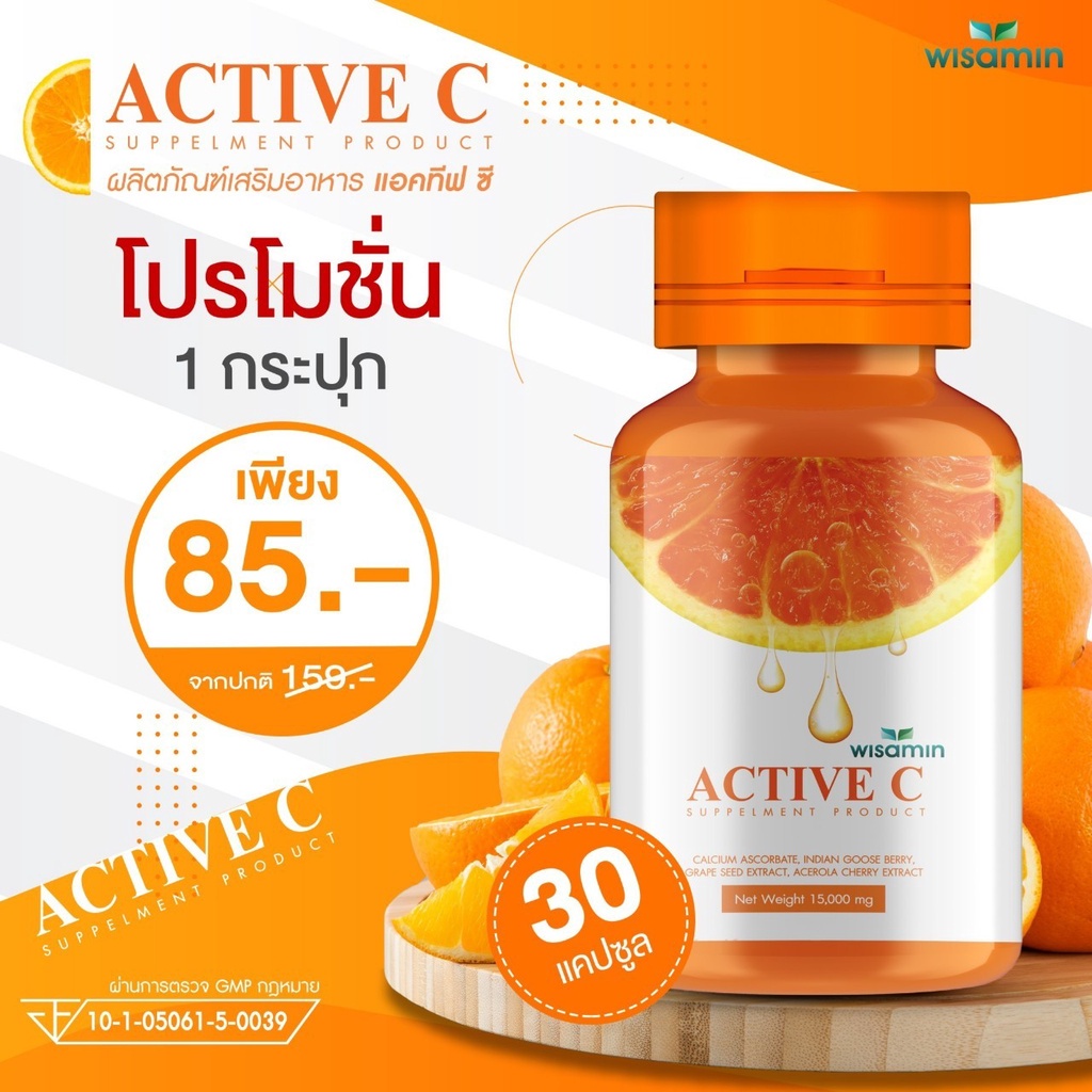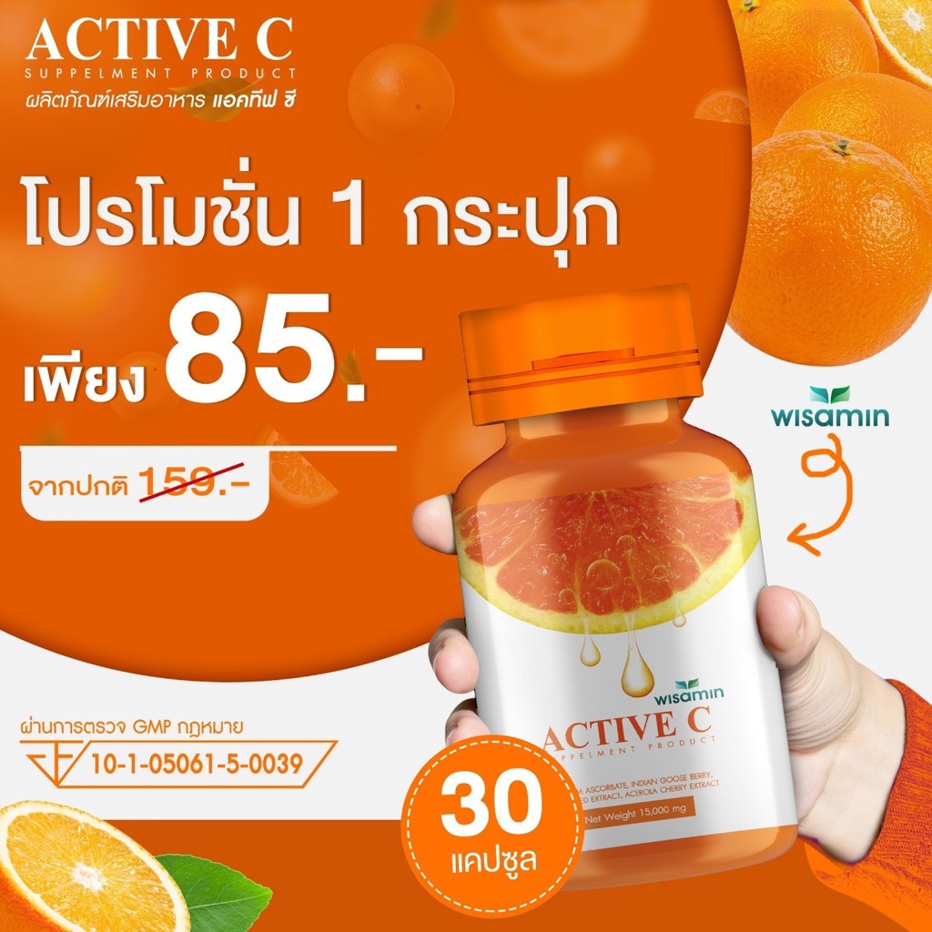 ACTIVE-C แอคทีฟซี วิตามินซี บรรจุแคปซูล 500mg (ตราวิษามิน) จำนวน 1 กระปุก 30 แคปซูล