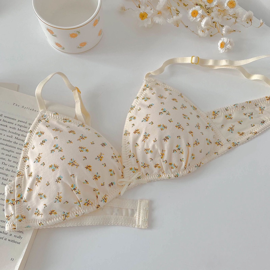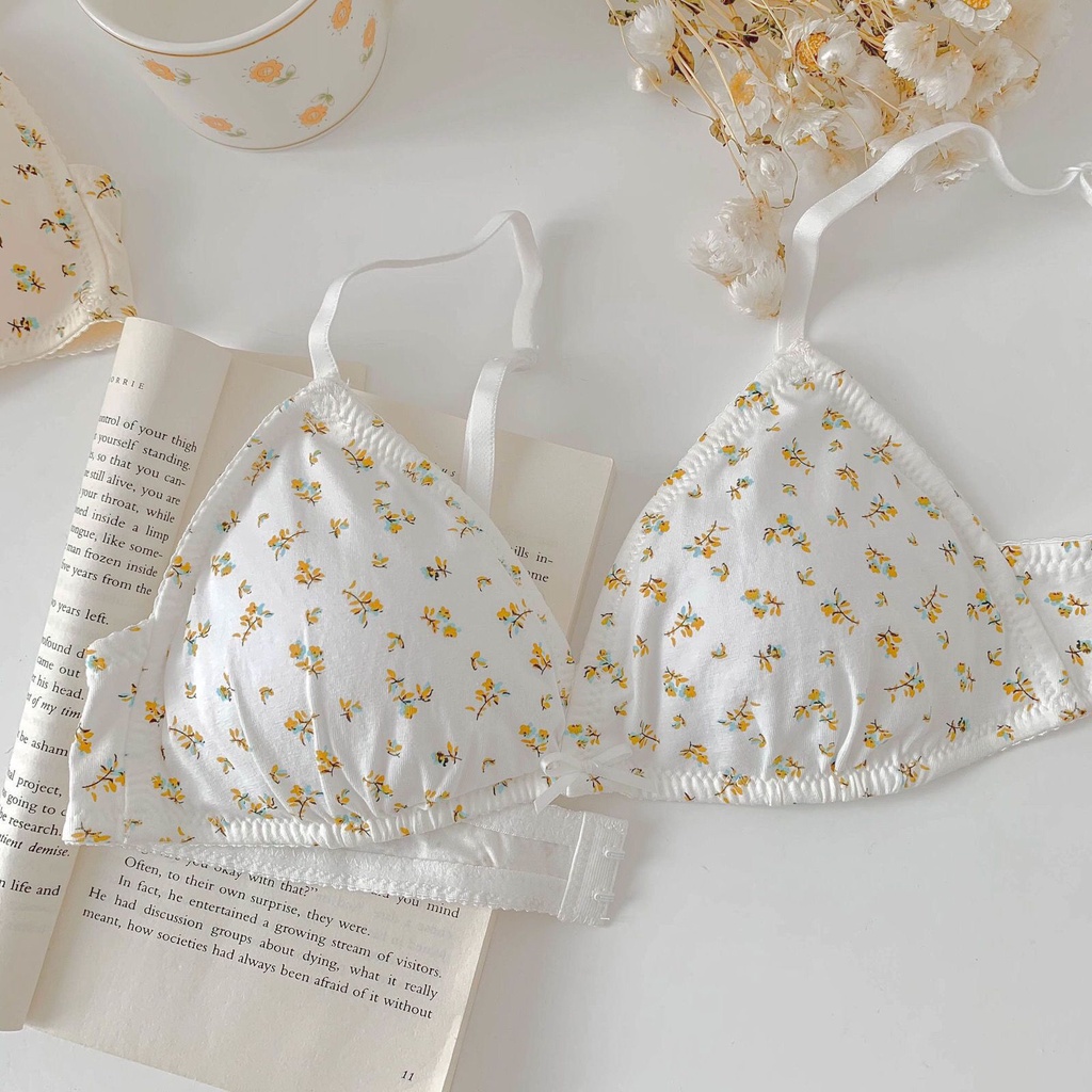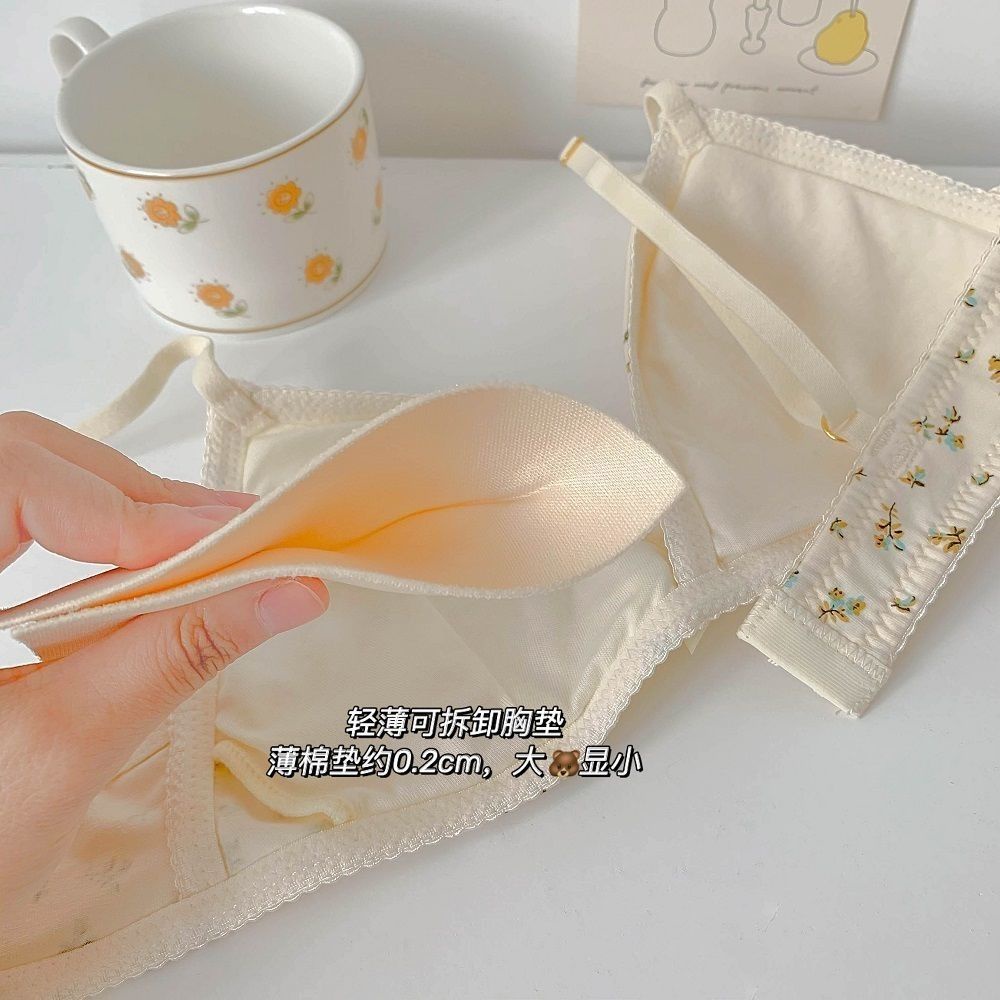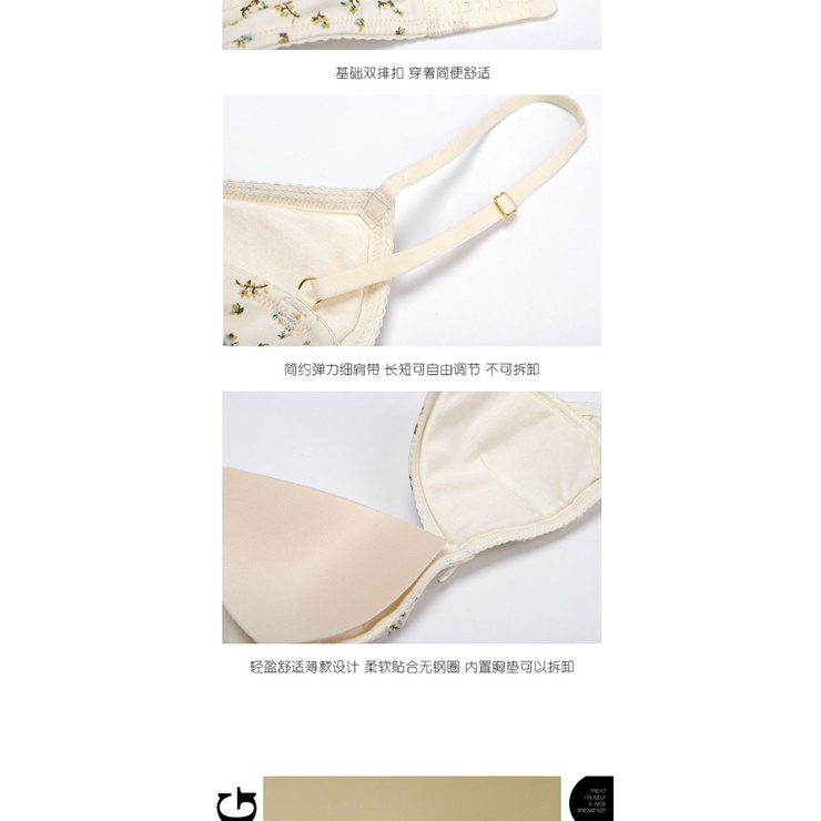 🌼🌼ชุดชั้นในเซ็กซี่ ถ้วยสามเหลี่ยม ไม่มีโครงเหล็ก ลายดอกไม้ ขนาดเล็ก สําหรับผู้หญิง สไตล์ฝรั่งเศส