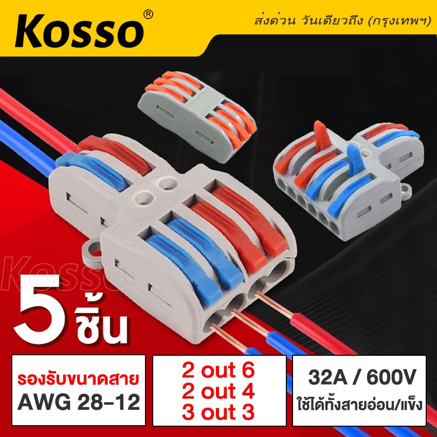 Kosso 5ชิ้น ข้อต่อสายไฟ ขั้วต่อสายไฟ เต๋าต่อสาย มาตรฐานโรงงาน