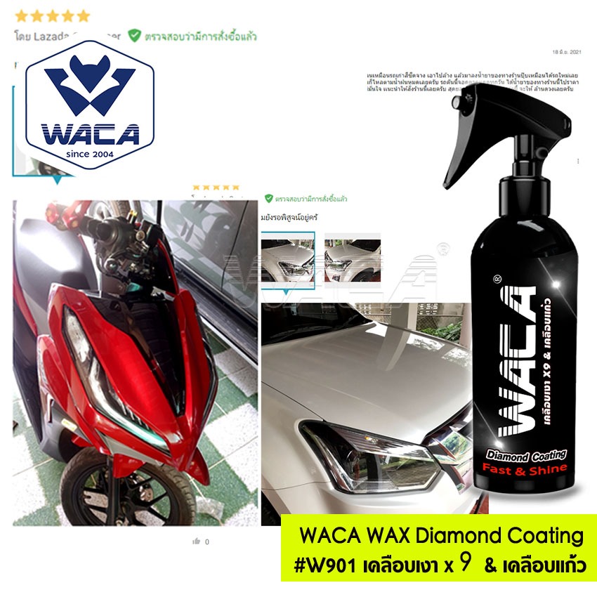 ส่งด่วน WACA WAX น้ำยาขัดเงารถ เ คลือบแก้ว สูตรเพิ่มสารเคลือบเงา x9 เคลือบสีฟิล์มแก้ว รถมอเตอร์ไซค์ รถยนต์