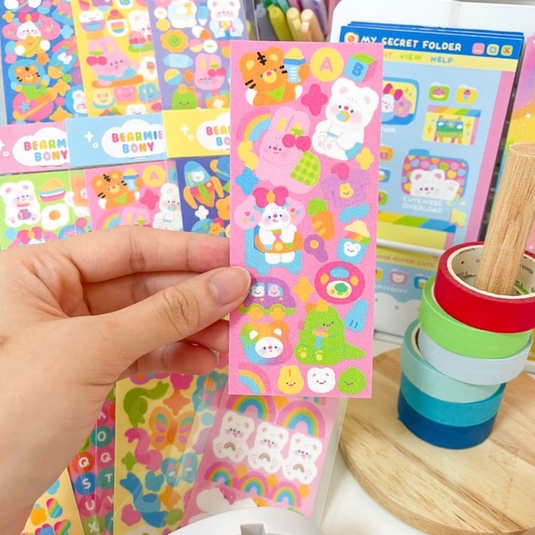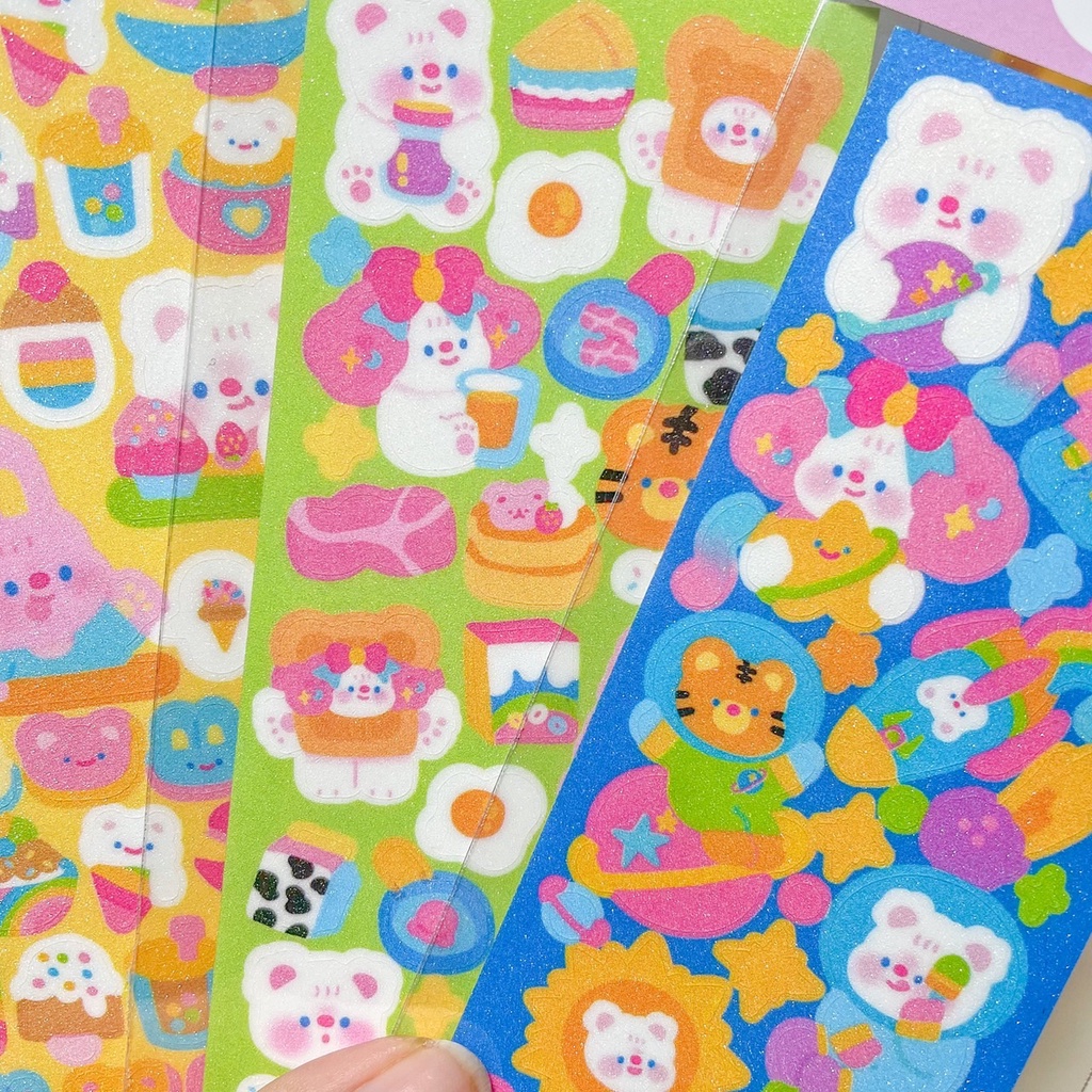 30 ลาย 🧸 สติกเกอร์กลิตเตอร์ วิ้บวับ ม้อบแม้บ กันน้ำ 100% GLITTER STICKER