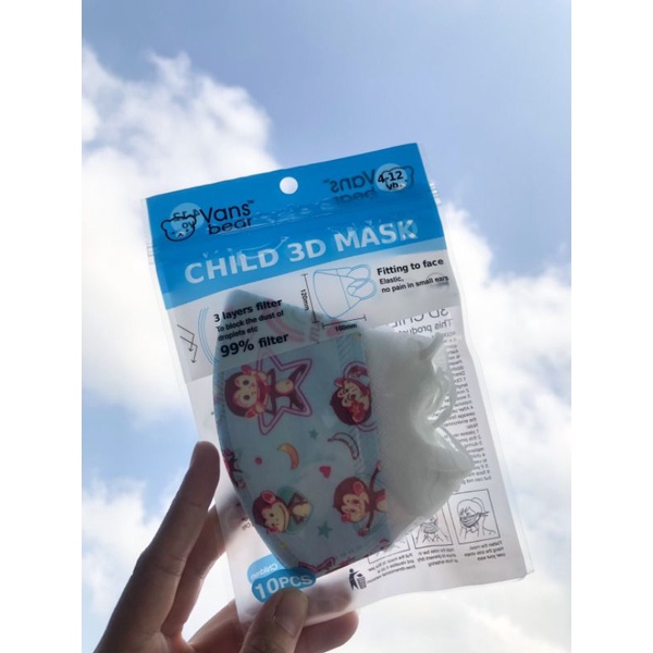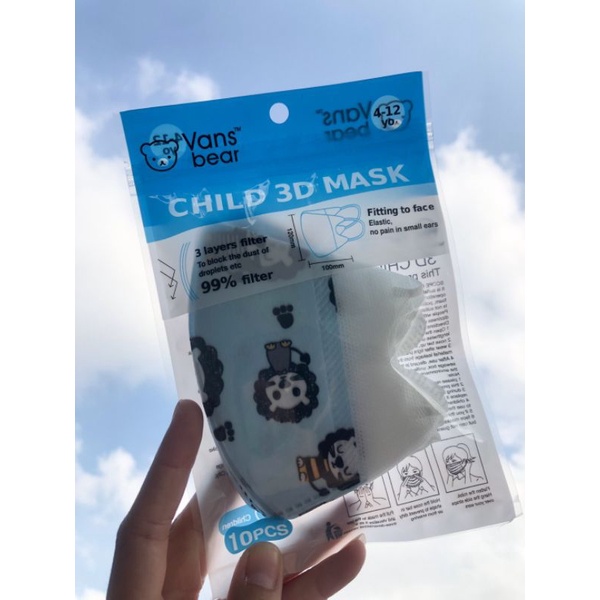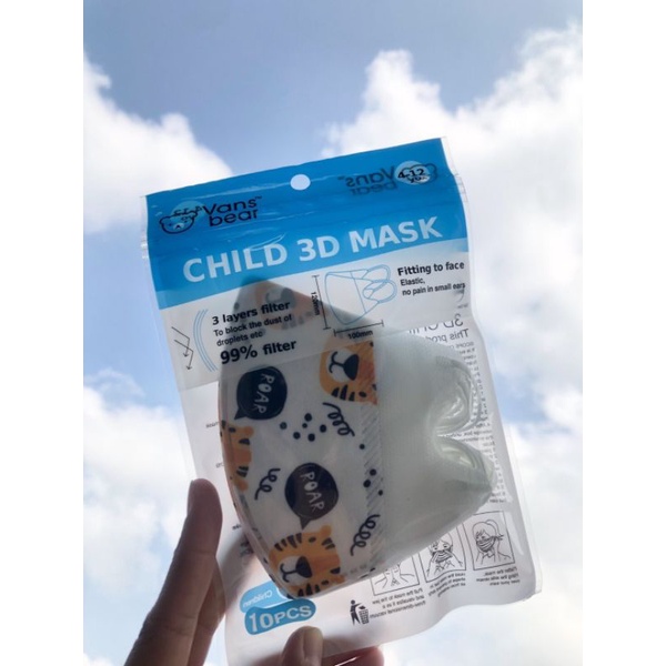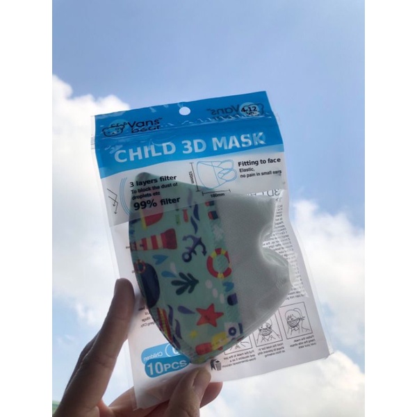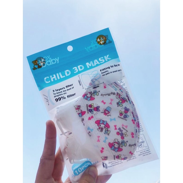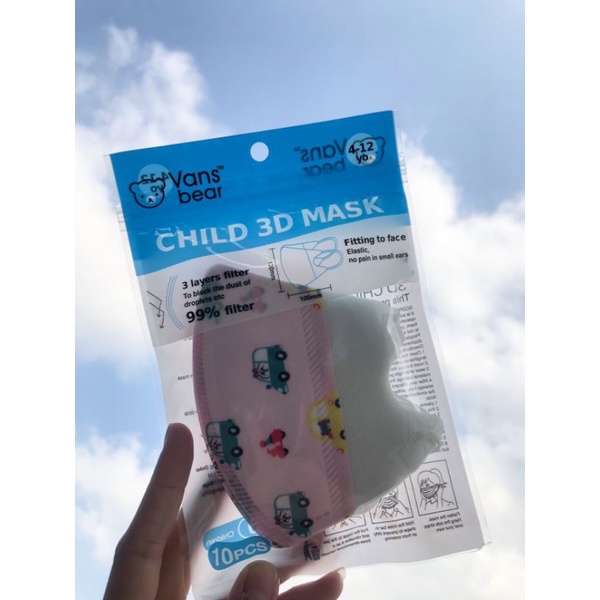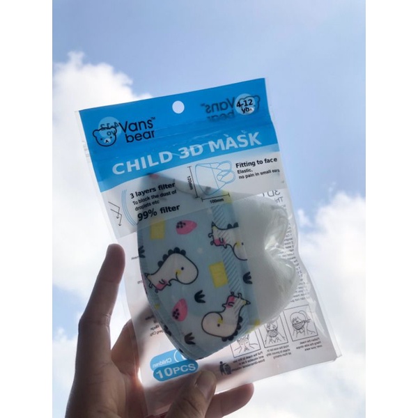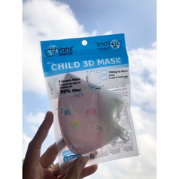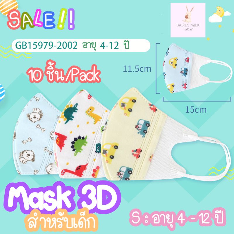 💕หน้ากากอนามัยเด็ก💕 10 ชิ้น/แพ็ค อายุ 4 ปีขึ้นไป ทรง 4D ผู้ใหญ่หน้าเล็กใส่ได้คะ