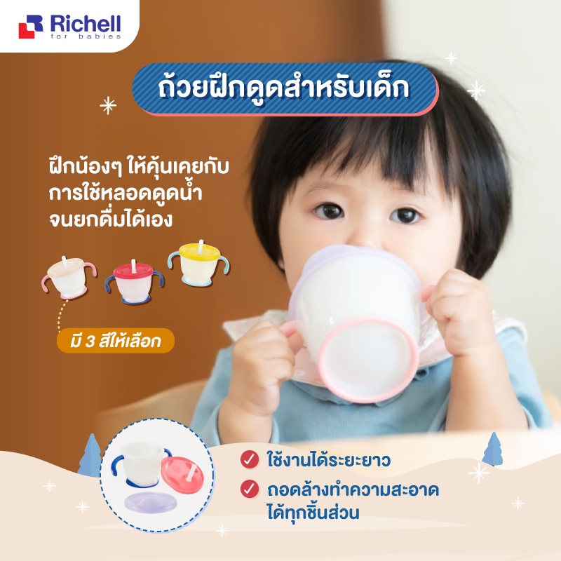 Richell แก้วหัดดื่ม ถ้วยหลอดดูด ถ้วยหัดดื่ม RICHELL AQULEA Cup de Mug ขนาด 150 มล.