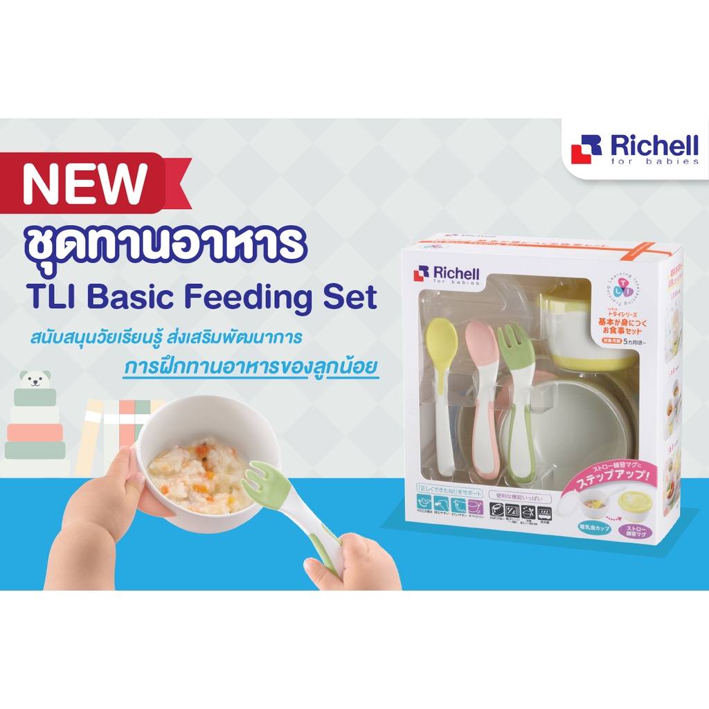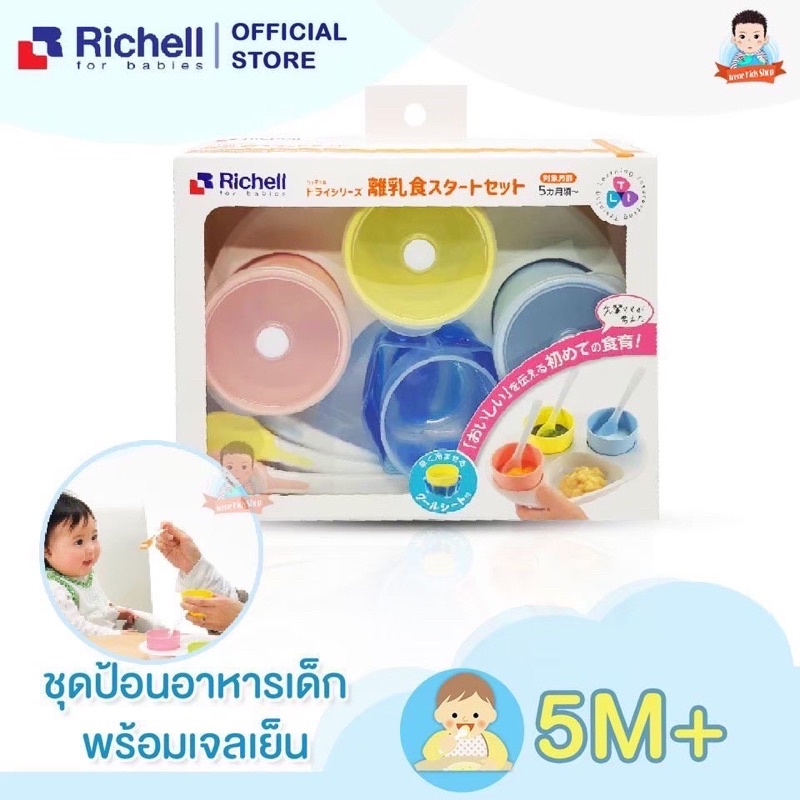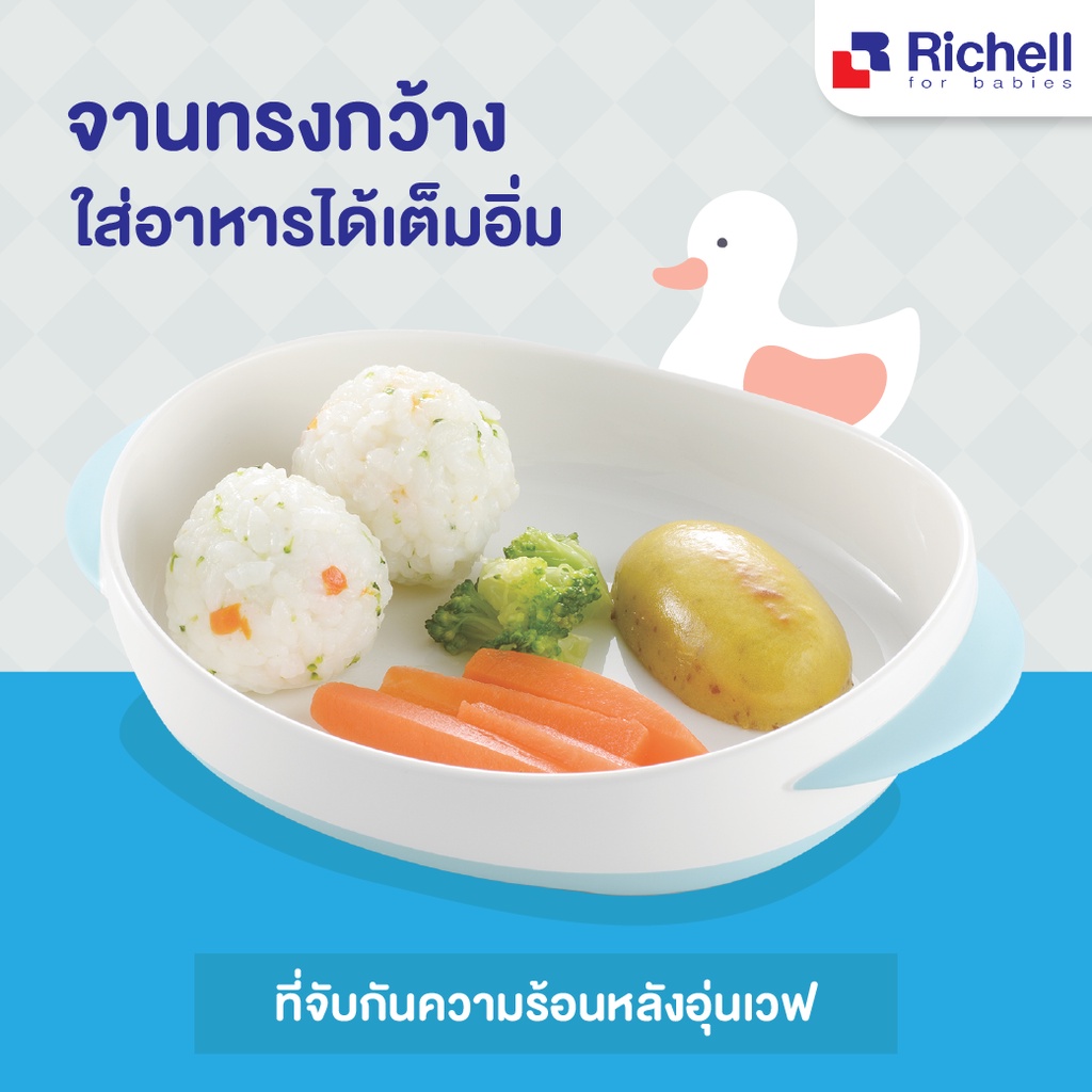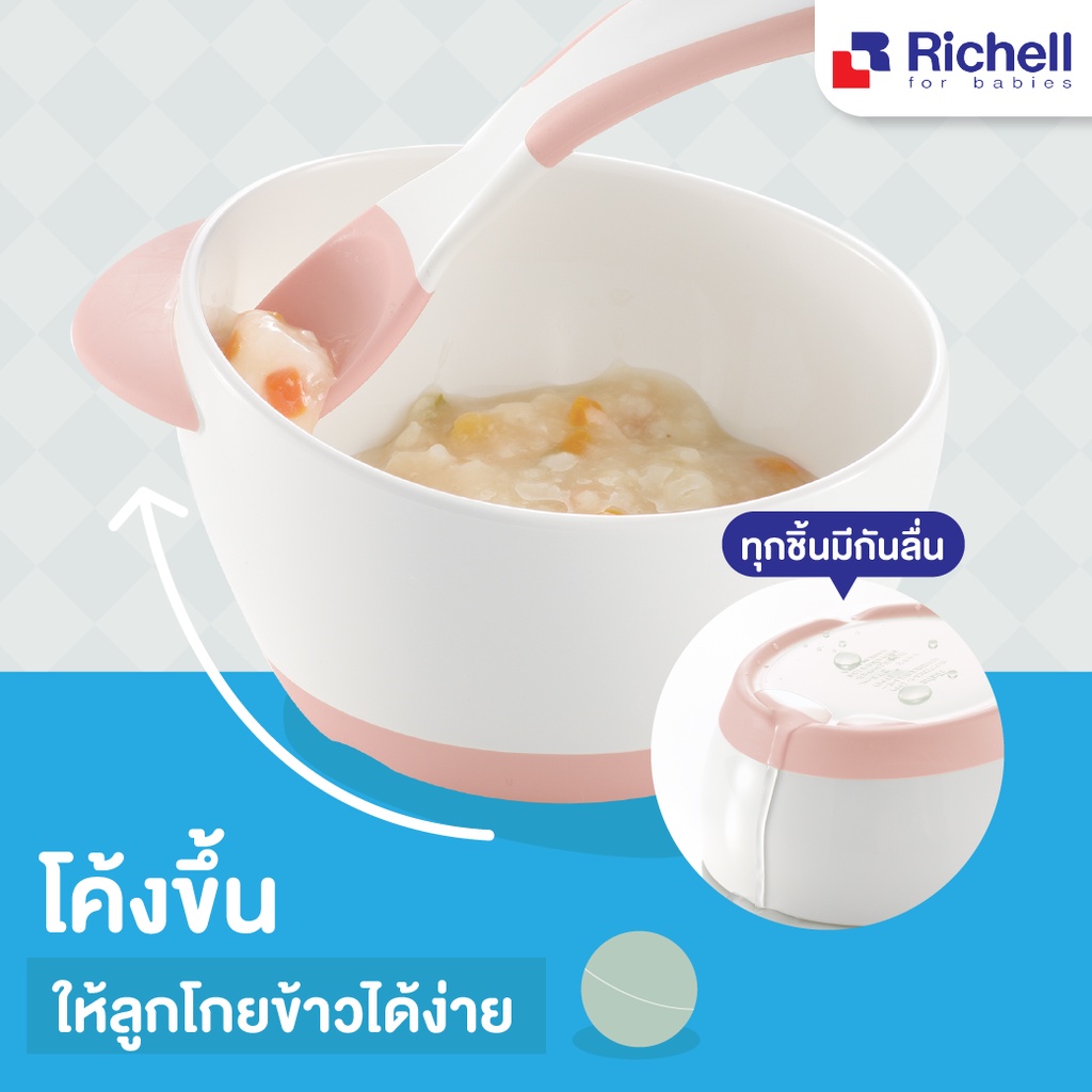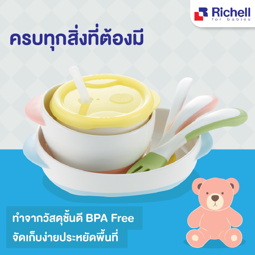 Richell ชุดจานหลุมพร้อมถ้วย และช้อนปลายนิ่ม สำหรับเริ่มป้อน ชุดทานอาหารสำหรับเด็ก