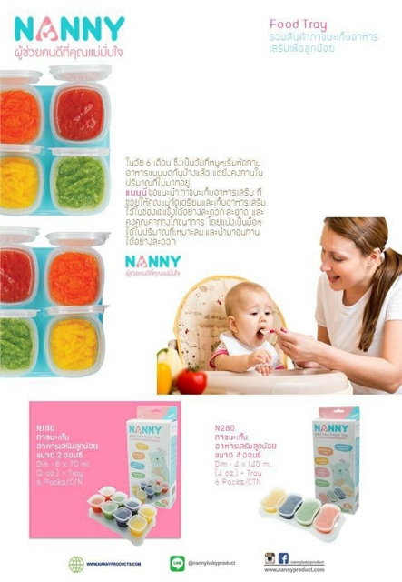 Nanny ชุดเก็บอาหารฝาล็อคพร้อมช้อน ขนาด5ออนซ์ Baby Food Container Set+Spoon