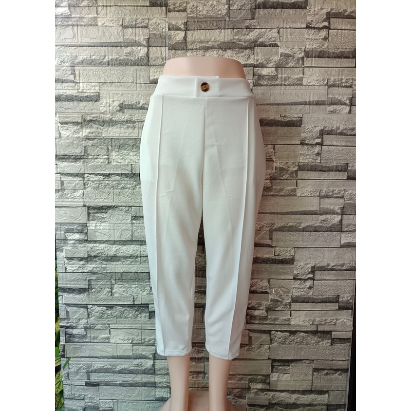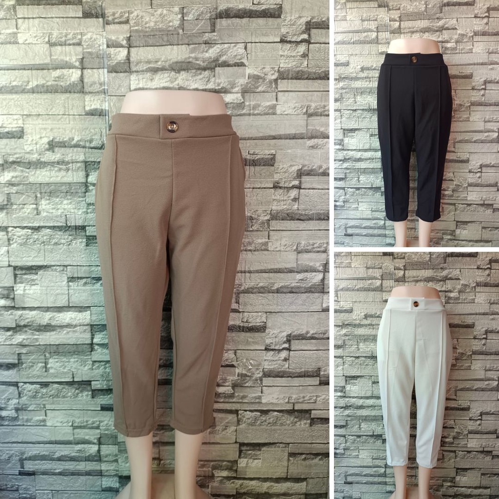 กางเกงสาวอวบ 7 ส่วน ติดกระดุม สีพื้น