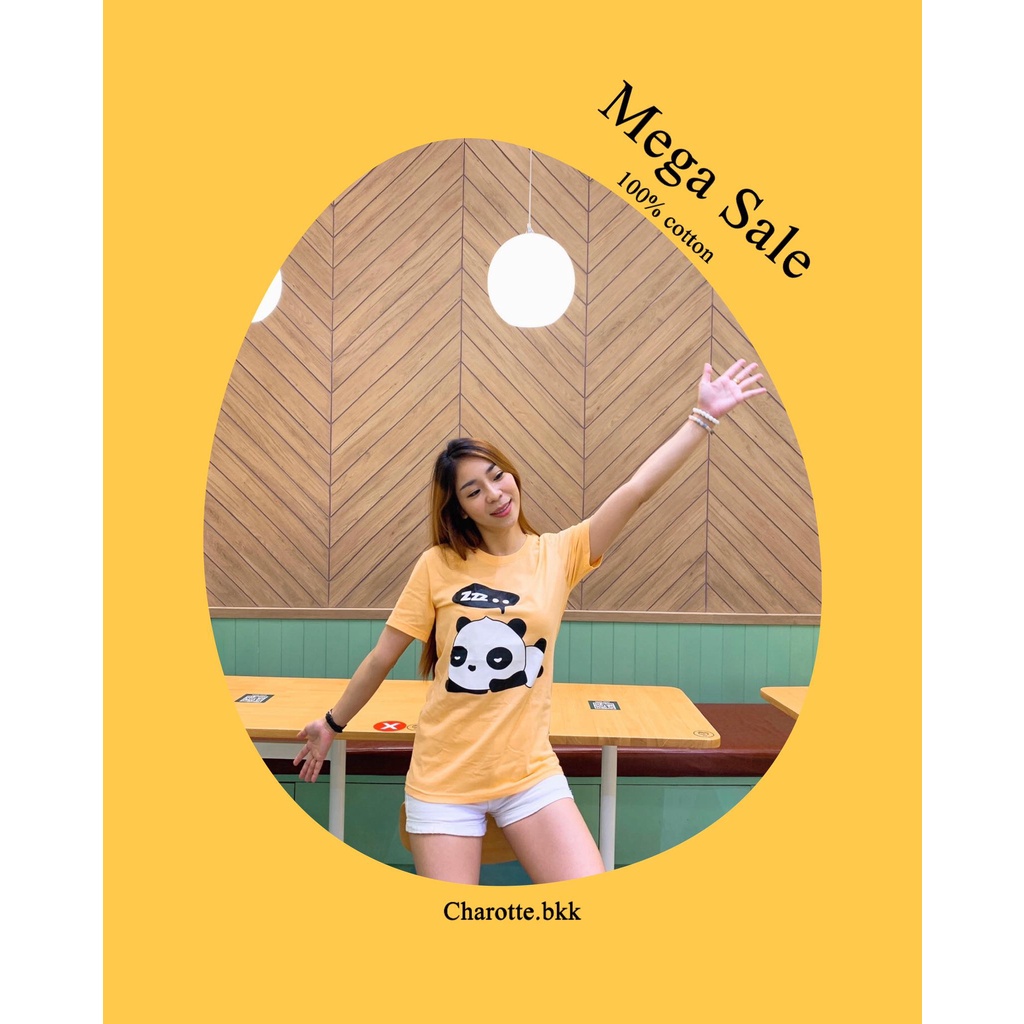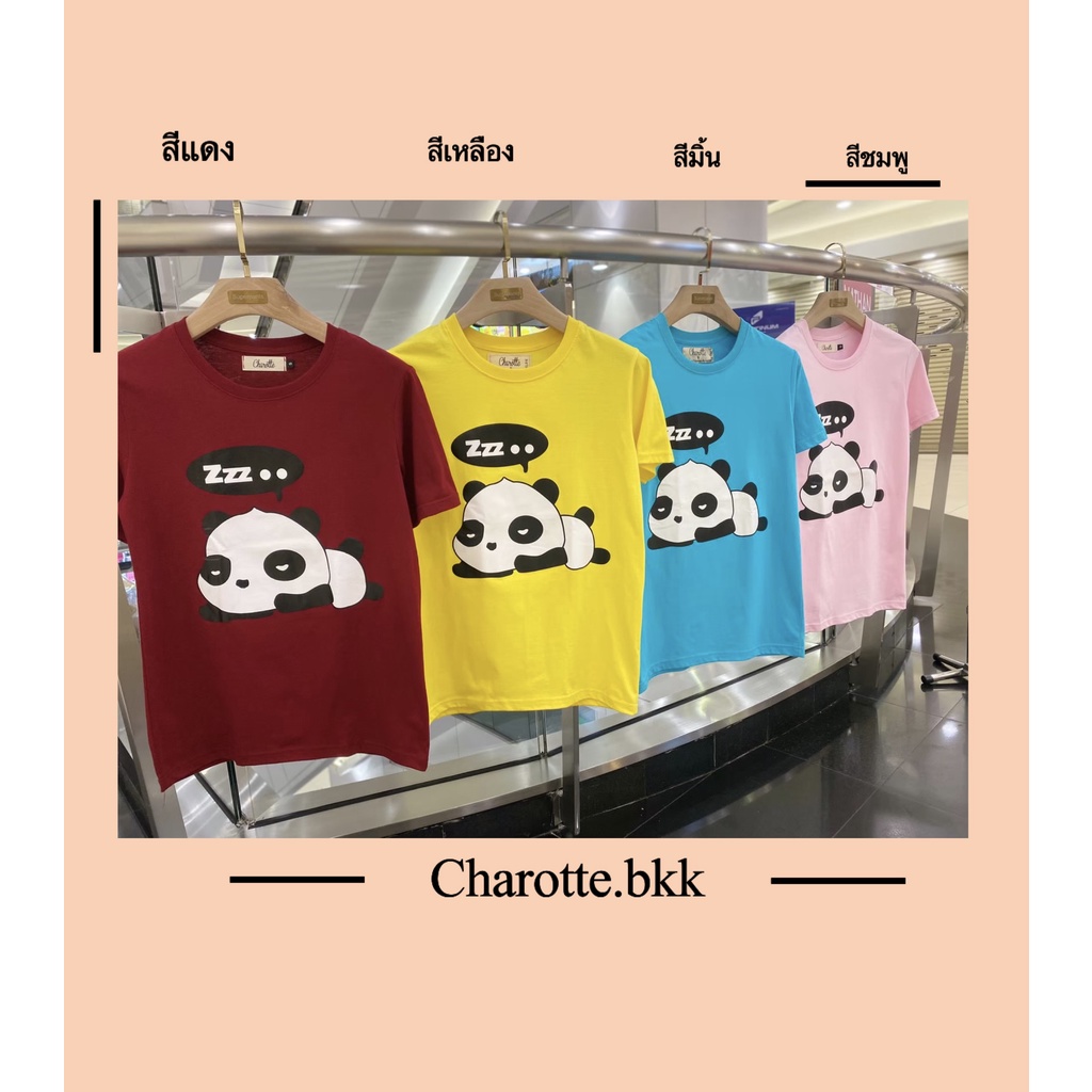 เสื้อยืดลายแพนด้า 𝗽𝗮𝗻𝗱𝗮 𝘀𝗹𝗲𝗲𝗽𝗶𝗻𝗴 ไซส์ S/M/L/XL/2XL/3XL