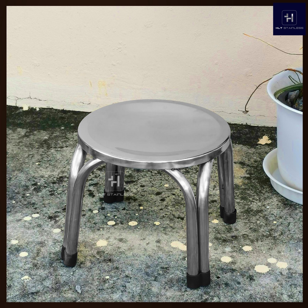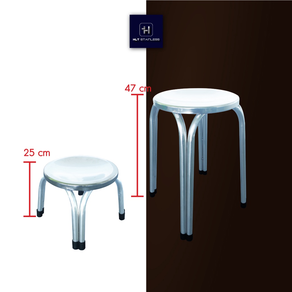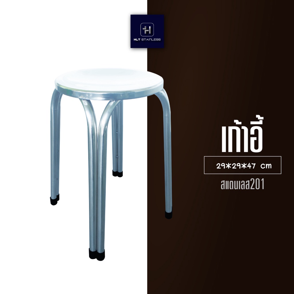 [พร้อมส่ง] HLT Stainless เก้าอี้สแตนเลส ทรงกลม เส้นผ่านศูนย์กลาง 29 cm สูง 25-47 cm