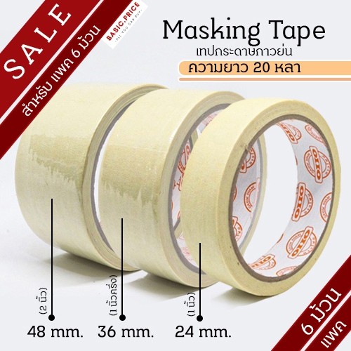 (แพค6ม้ว น) เทปย่น ฉีกได้ เทปกระดาษกาวย่น เทปหนังไก่ ความยาว 20 หลา