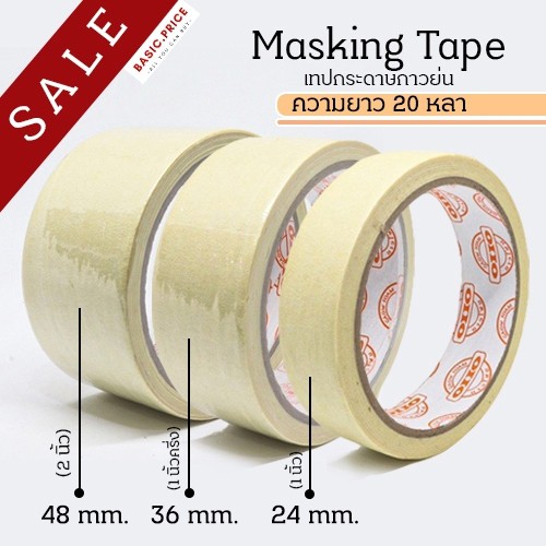 (ม้วนเดี่ยว) เทปย่น ฉีกได้ เทปกระดาษกาวย่น เทปหนังไก่ ความยาว 20 หลา