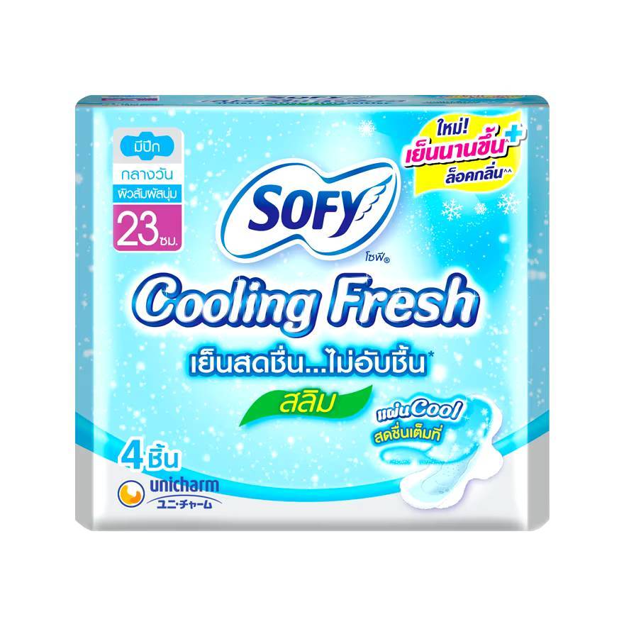 Sofy โซฟี กลางวัน โซฟีกลางคืน ผ้าอนามัย จำนวน 1 ห่อ 4ชิ้น (มีปีก!) น้ำยาปรับผ้านุ่ม