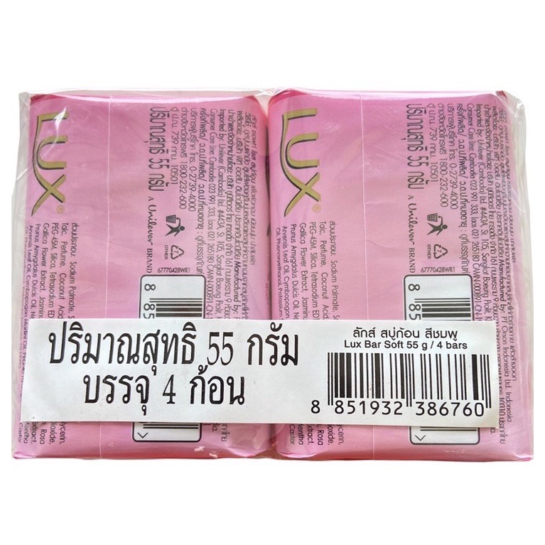 1 ก้อน (เก็บโค้ดหน้าร้าน เหลือ 0 บาท) Lux Soap สบู่ลักส์ 55 กรัม กลิ่น Soft rose