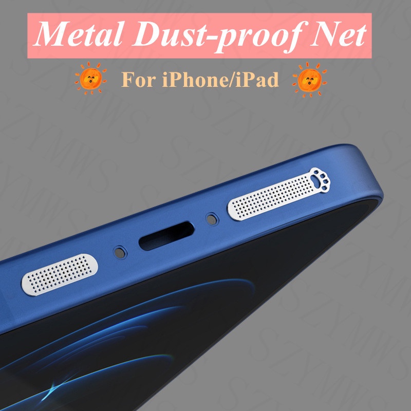 โลหะฝุ่นสําหรับiPhone 17 16 15 14 13 12 11 Pro Max 17 Air 17 16 15 14 Plus 13 12 Mini Universalโทรศัพท์ลําโพงหูฟังสุทธิสําหรับiPadฝุ่นป้องกันสติกเกอร์ 4 ชิ้น