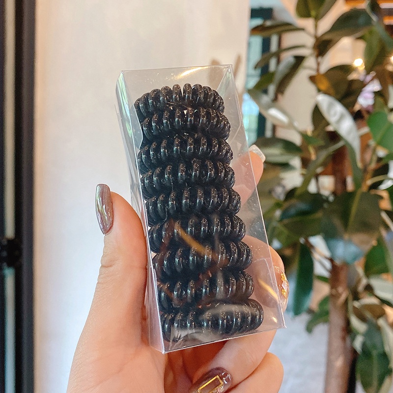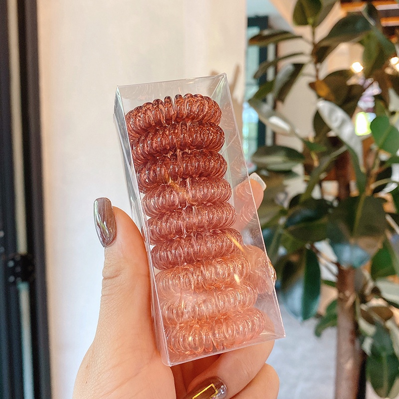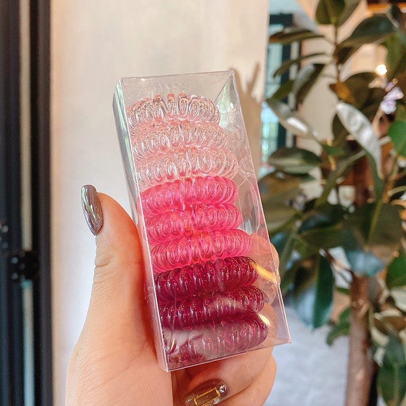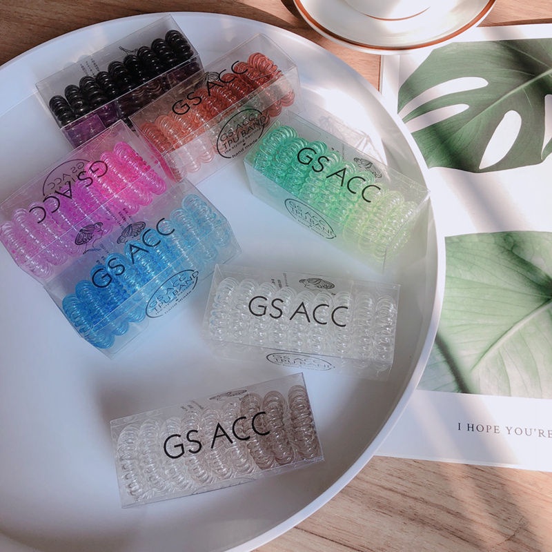 ยางมัดผมเกลียว ยางเกลียวกล่องละ 9 เส้น ยางพลาสติก TPU ยางรัดผมสีสวยมาก
