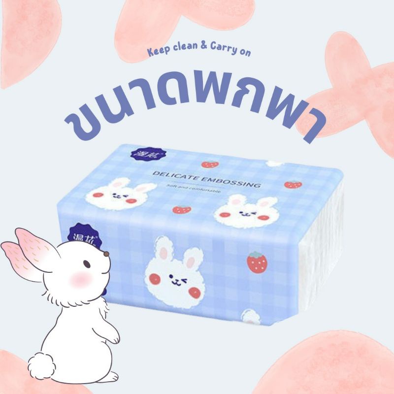 กระดาษทิชชู่น้องกระต่าย ขนาดพกพา เช็ดหน้า เช็ดมือ เหนียวนุ่ม ซึมซับน้ำได้ดี ราคาถูก