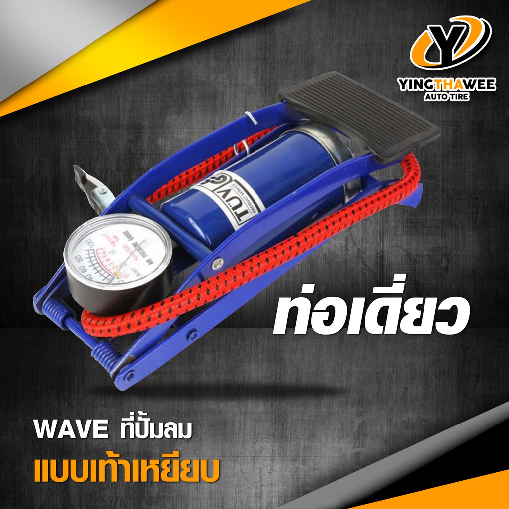 WAVE ที่สูบลม แบบเท้าเหยียบ ท่อเดี่ยว เอนกประสงค์ สูบลมรถยนต์ มอเตอร์ไซด์ จักรยาน และอื่นๆ มาพร้อมที่วัดลม คุณภาพดี