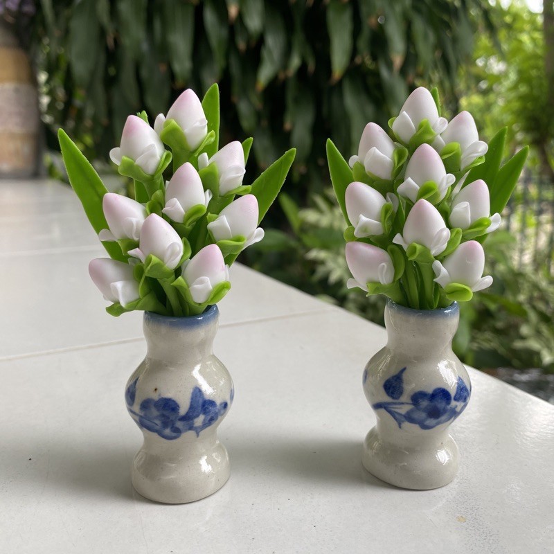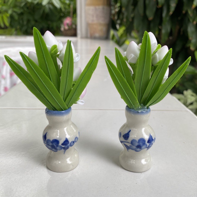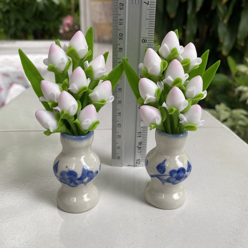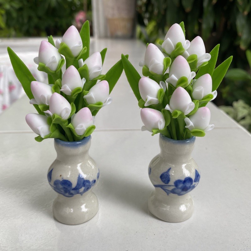 แจกันดอกบัว ดอกบัวจิ๋ว แจกันดอกบัว 9 ดอก แจกันดอกบัวงานดินปั้น ดอกไม้ประดิษฐ์ คู่ละ 99 บาท
