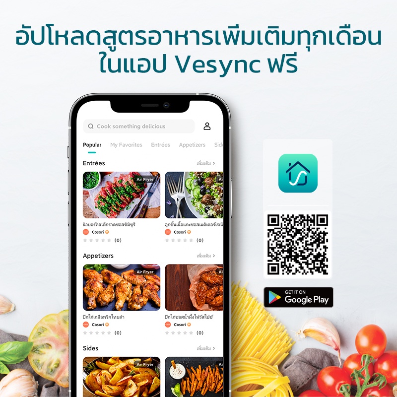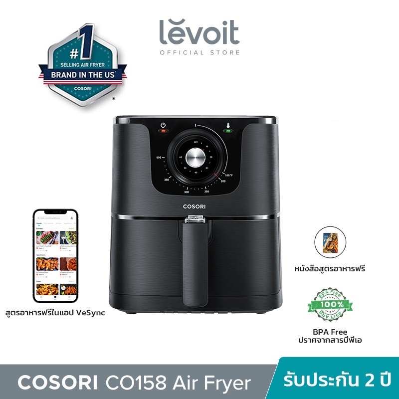 Levoit Cosori CO158 Air Fryer 5.5L หม้อทอดไร้น้ำมัน หม้อทอด ไฟฟ้า หม้อทอดไร้น้ำมันความจุมาก หม้อทอดลมร้อน หม้อทอด หม้อทอดไฟฟ้าอัจฉริยะไร้น้ำมัน กำลังไฟ 1700W อาหารไม่ติดหม้อ Smart APP ให้การทำสูตร