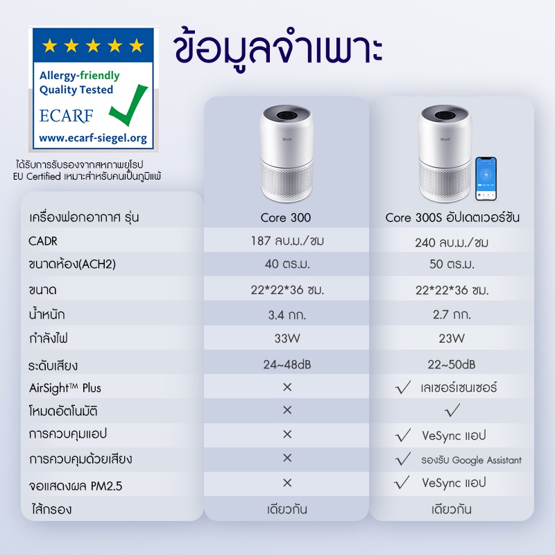 Levoit Core 300 เครื่องฟอกอากาศ PM2.5 Air Purifier levoit 300 กรองอากาศ ประกัน 2 ปี