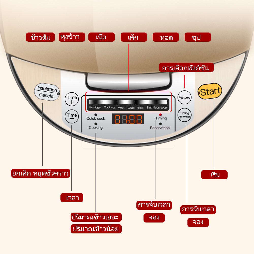 หม้อห ุงข้าวไฟฟ้า Yotex หม้อหุงข้าว 5 ลิตร หม้อหุงข้าวดิจิตอล ซึ้งนึ่ง Smart Rice Cooker