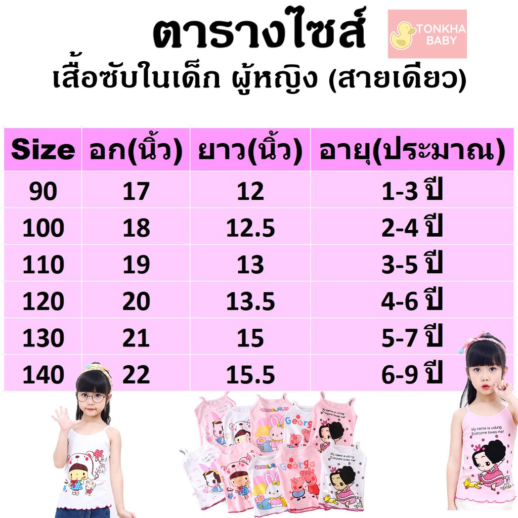 เสื้อซับในเด็ก ผู้หญิง 1 ตัว เลือกไซส์ 90-140 เลือกสี ขาว ชมพู คละลาย เสื้อสายเดี่ยวเด็ก เสื้อกล้ามเด็ก