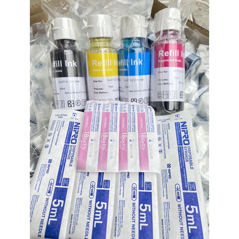 หมึกเติม Hp เติมตลับหมึก Hpได้ทุกรุ่น ดำ 90 ml สีละ 70 ml แถม เข็ม ไซริ้ง ของเทียบเท่า