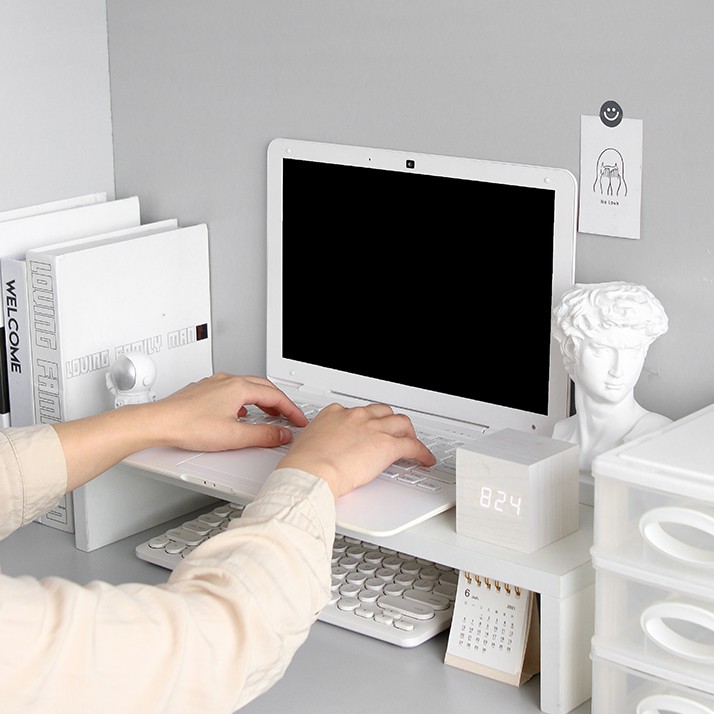 happyhome official ชั้นวางจอคอม ชั้นวางโน้ตบุ๊ค รุ่นไม้หนา 1.6 ทนทาน สีขาว ผลิตจากโรงงานไทย คุณภาพดี