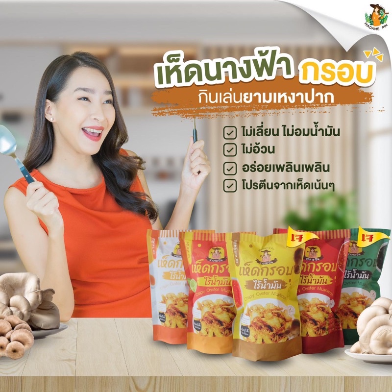 เห็ดนางฟ้าอบกรอบ ทำจากเห็ดออร์แกนิค ดีต่อสุขภาพ 40 กรัม ไร้น้ำมัน โปรตีนจากเห็ดเน้นๆ