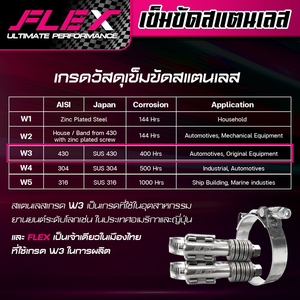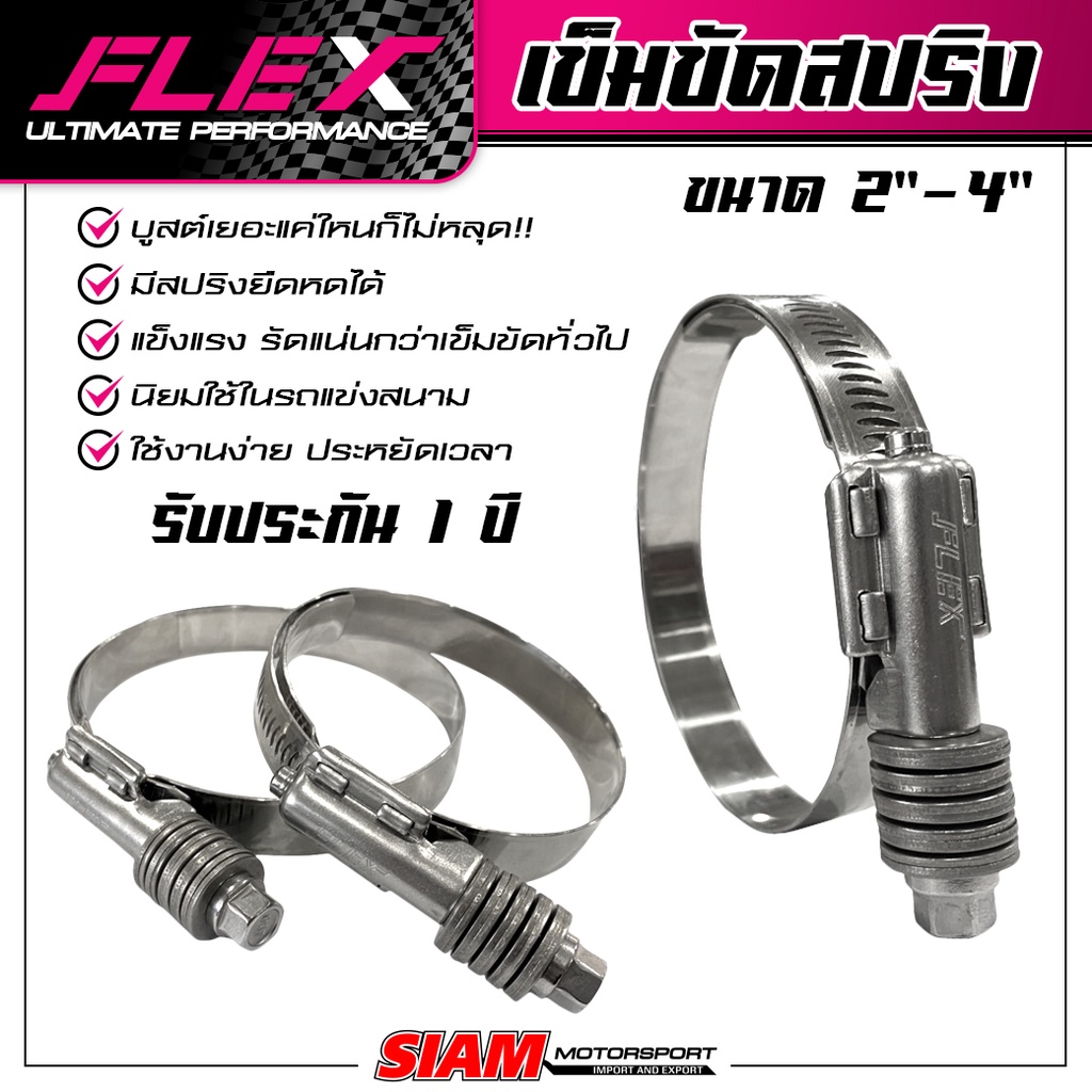 เข็มขัดหัวสปริงสแตนเลส FLEX คุณภาพรถแข่ง บูสต์เยอะแค่ไหนก็ไม่หลุด สแตนเลสแท้ เกรดดีที่สุด ทนที่สุด รับประกันแตก รูด 1 ปี