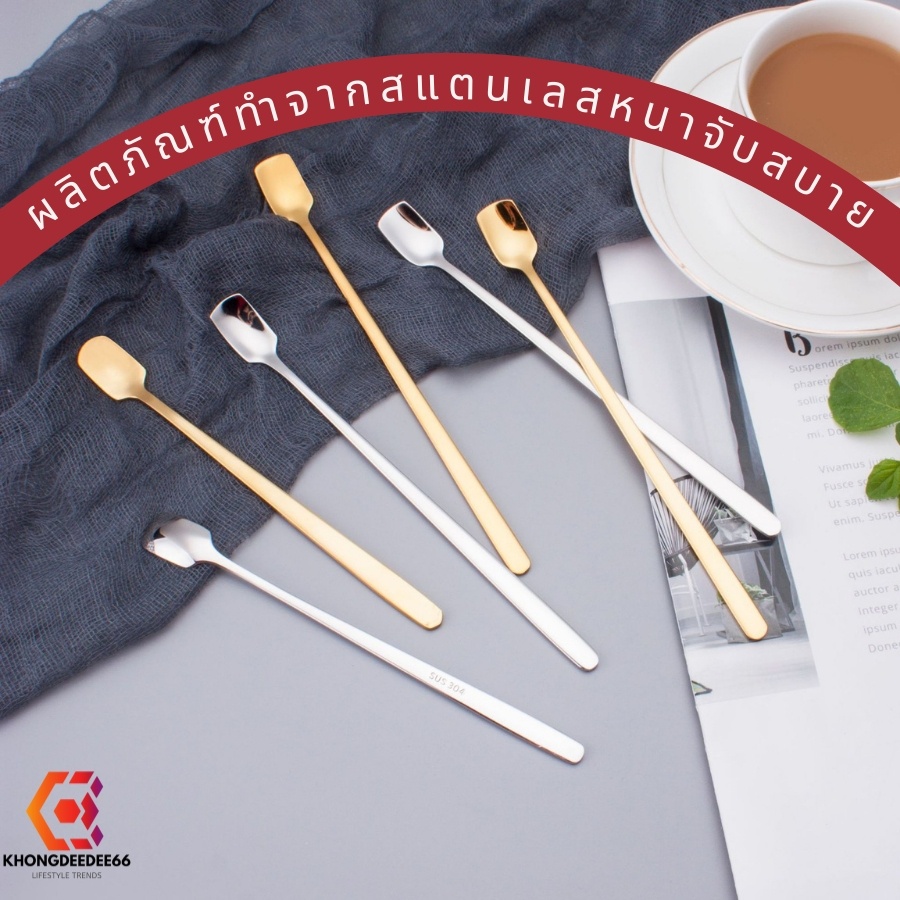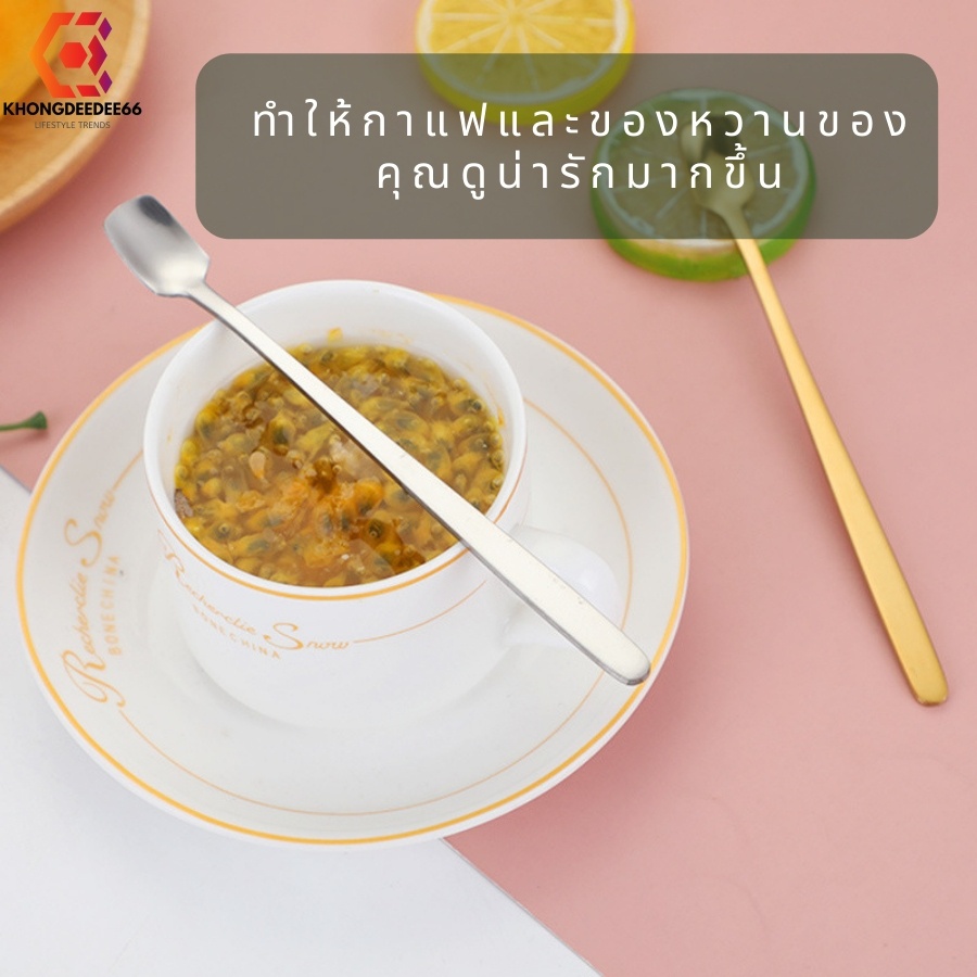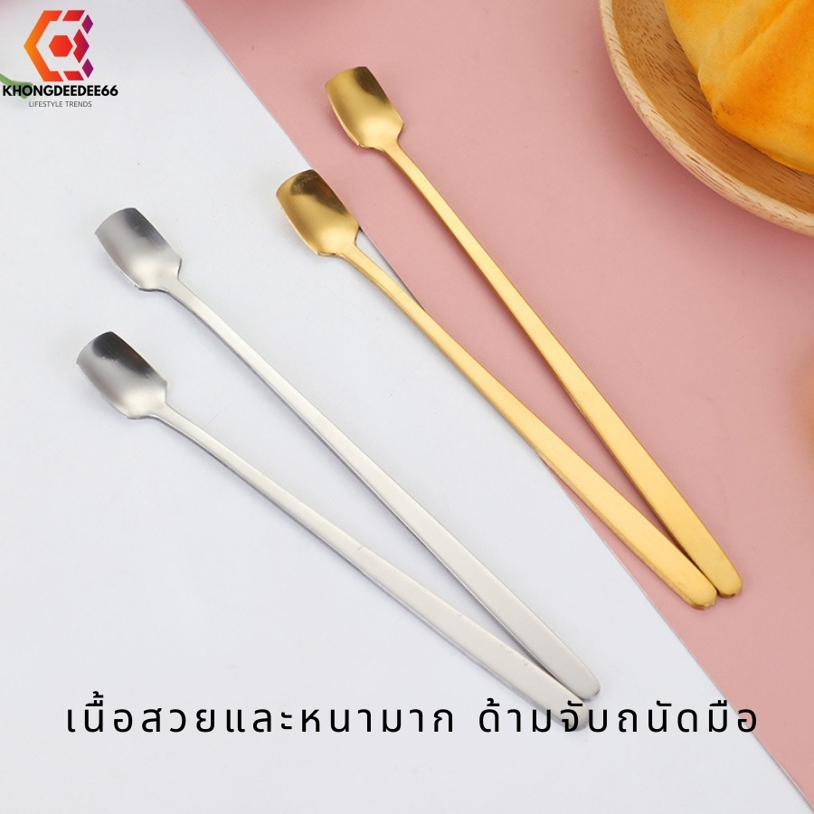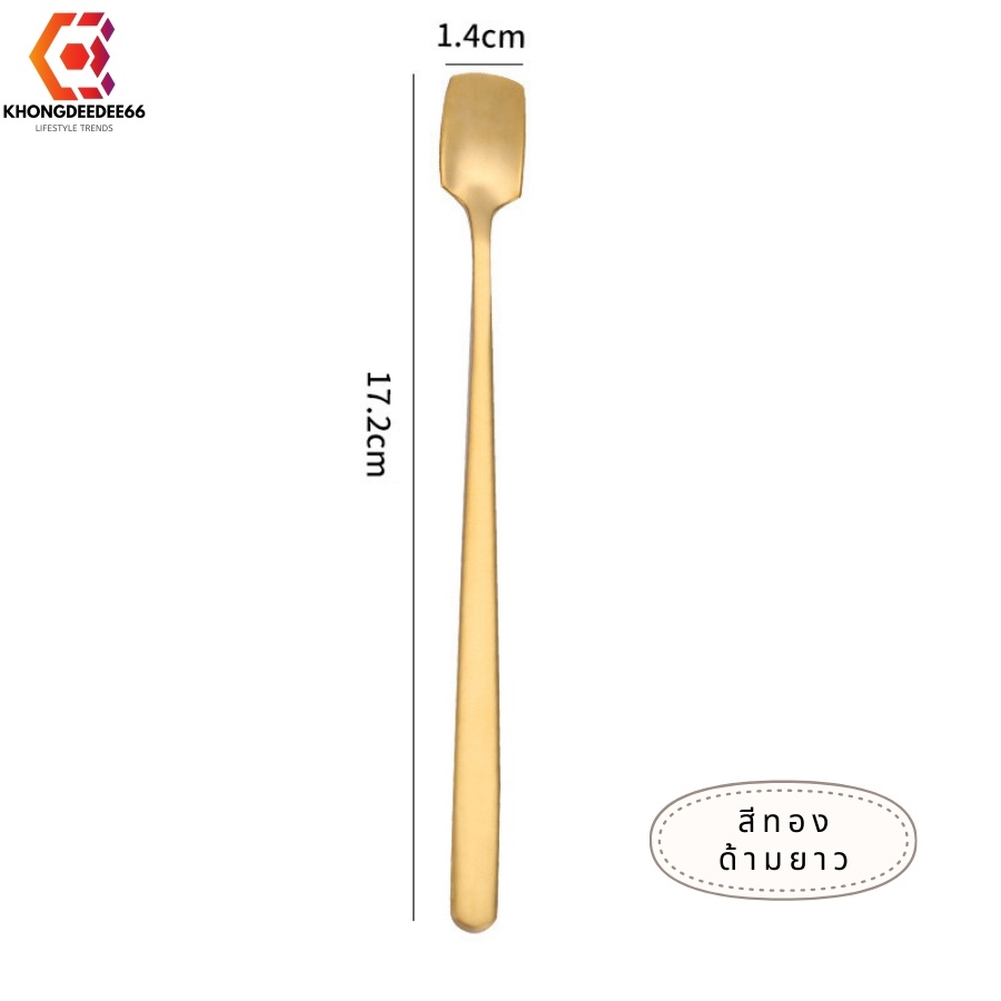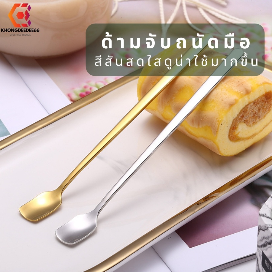 ช้อนกาแฟ ช้อนทานขนมเค้ก ช้อนสเตนเลสสีเงิน+ทอง ด้ามยาวมี 2ขนาด