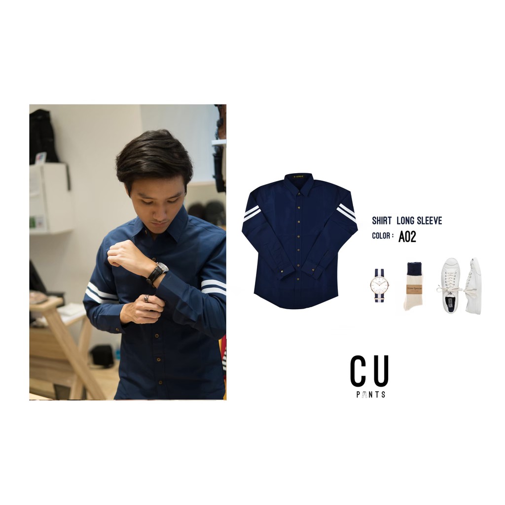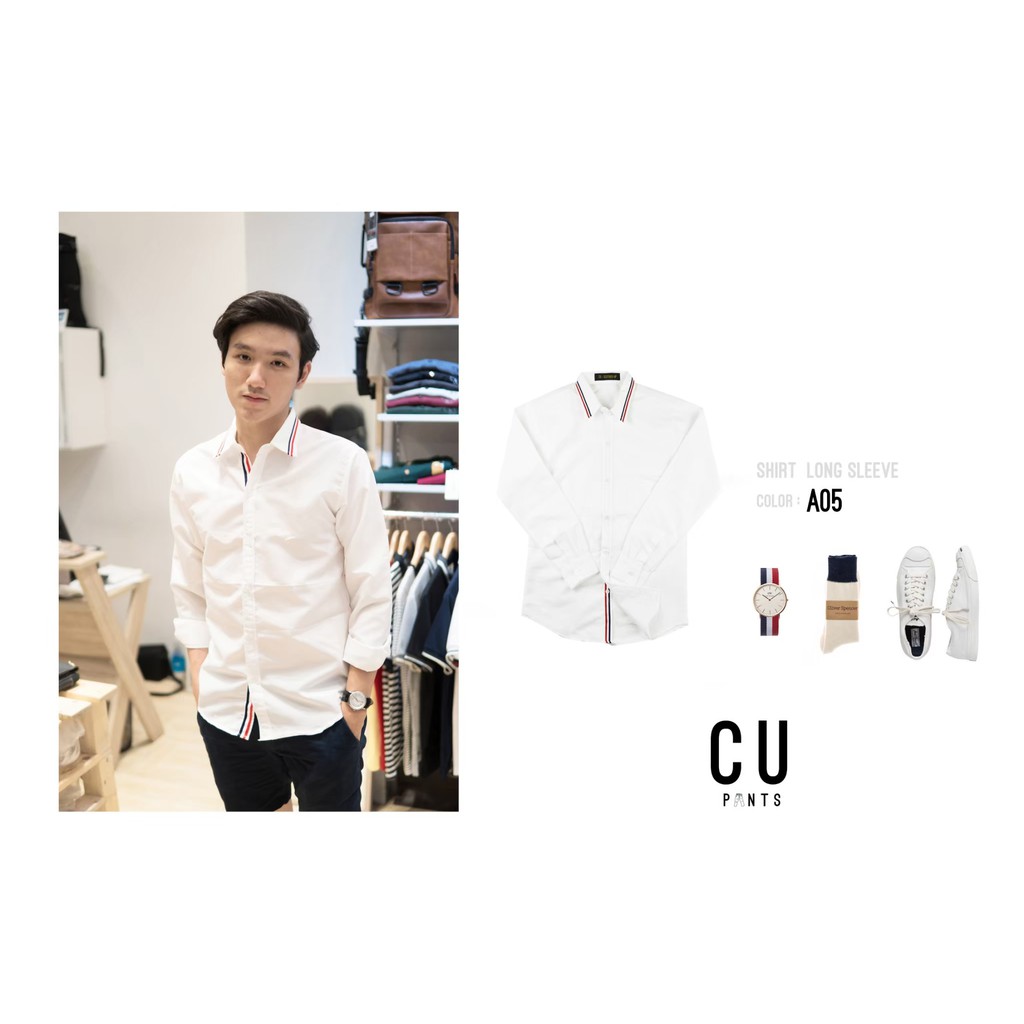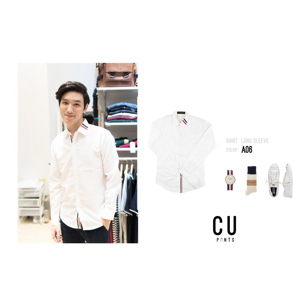 CU เสื้อเชิ้ตแขนยาว "ใส่สบาย ไม่ต้องรีด" (17แบบ) สีขาว สีดำ สีกรม : รุ่น SHIRT MINIMAL