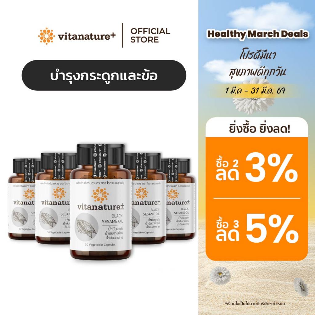 vitanature+ Black Sesame Oil ดูแลสุขภาพกระดูกและข้อเข่า 5 กระปุก (ไวตาเนเจอร์พลัส น้ำมันงาดำ)
