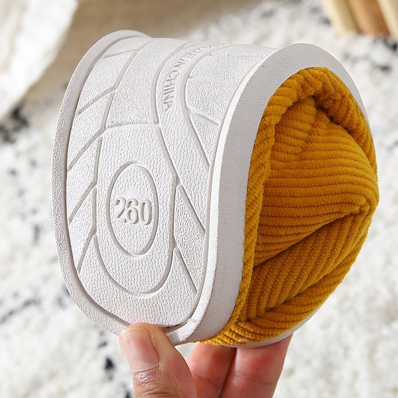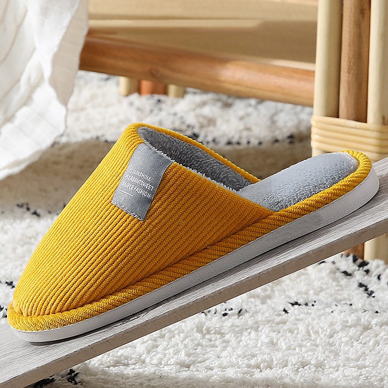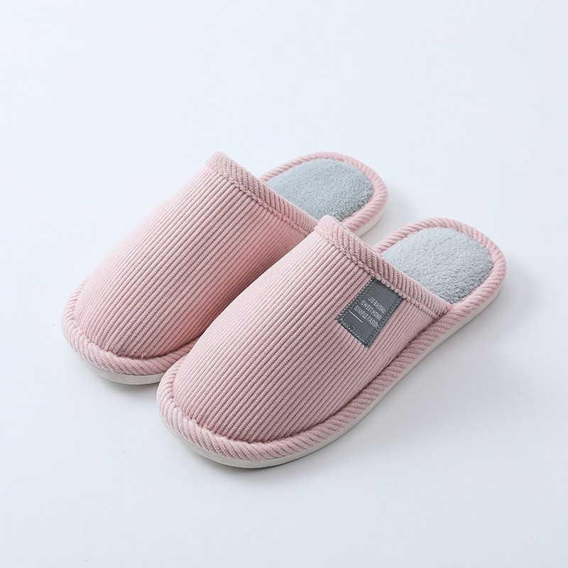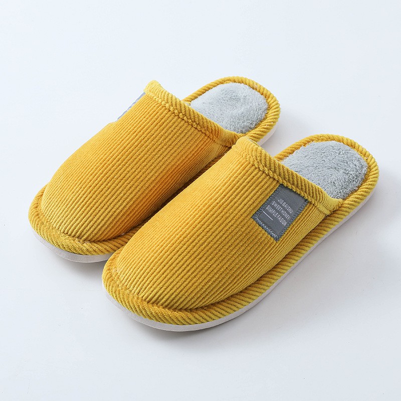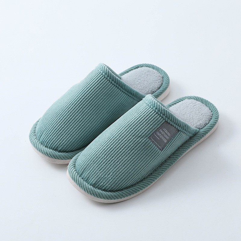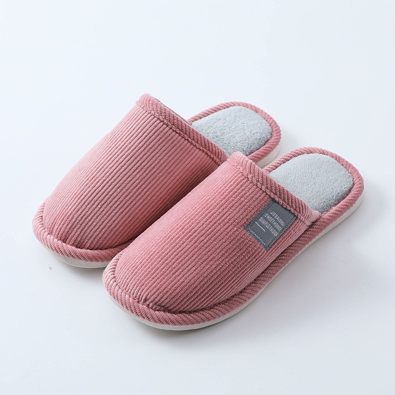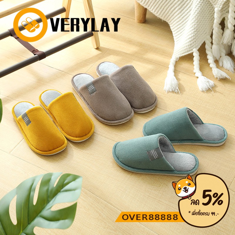 Overylay รองเท้าใส่ในบ้าน สลิปเปอร์ลูกฟูกขนนุ่ม สวมใส่สบาย พื้นยาง กันลื่น สีพื้น