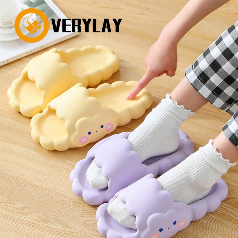 Overylay รองเท้าแตะผู้หญิง สไตล์เกาหลี พื้นยาง EVA ลายก้อนเมฆ น่ารัก หนา นุ่ม ใส่สบาย สินค้าในไทย