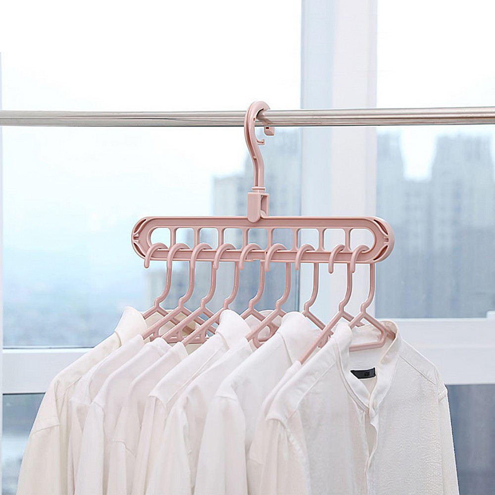 ไม้แขวน ไม้แขวนผ้า 9 in 1 ไม้แขวนอเนกประสงค์ หมุนได้ 360 องศา ประหยัดพื้นที่จัดเก็บ สีชมพูกะปิ