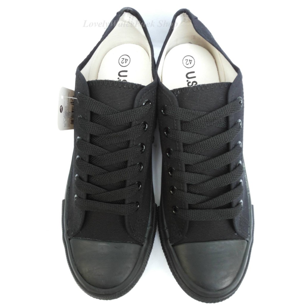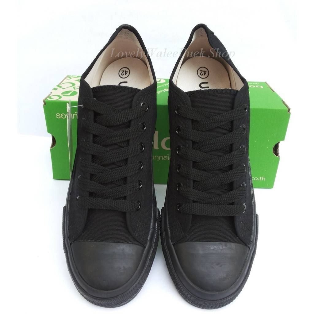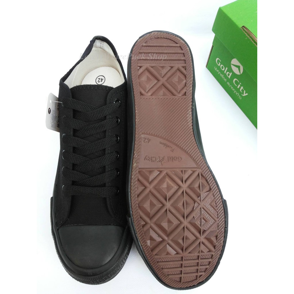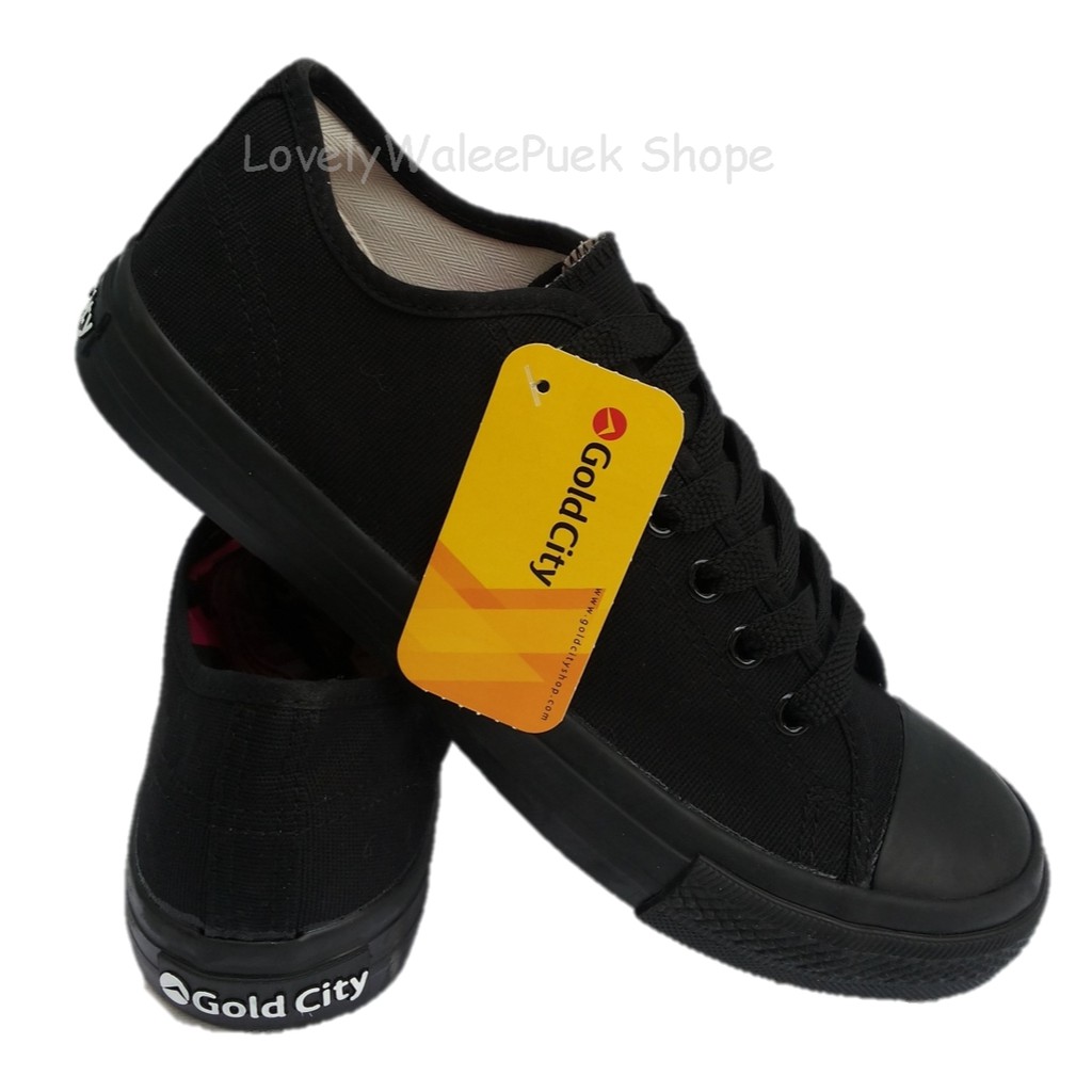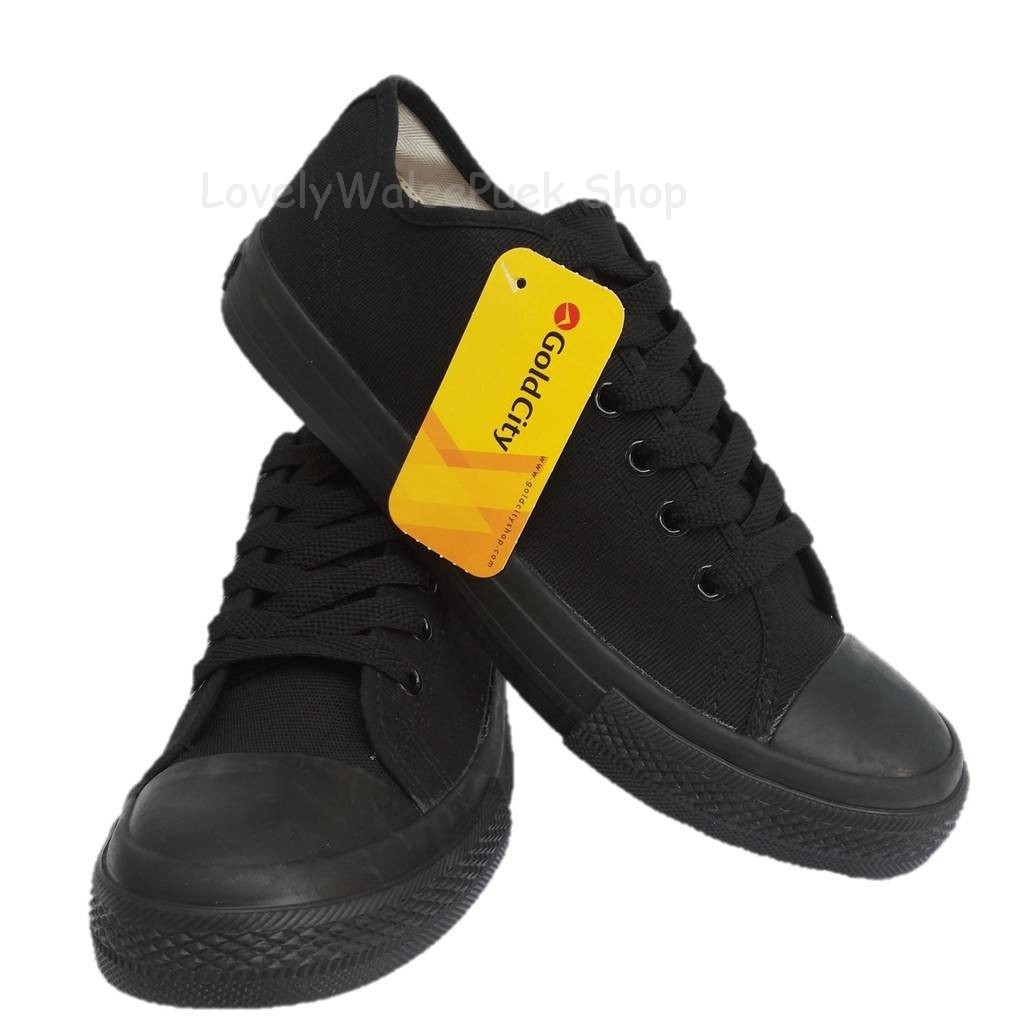 พร้อมส่ง🛒>>GoldCity-1207 รองเท้าผ้าใบสีดำล้วนแฟชั่น Size 35-47