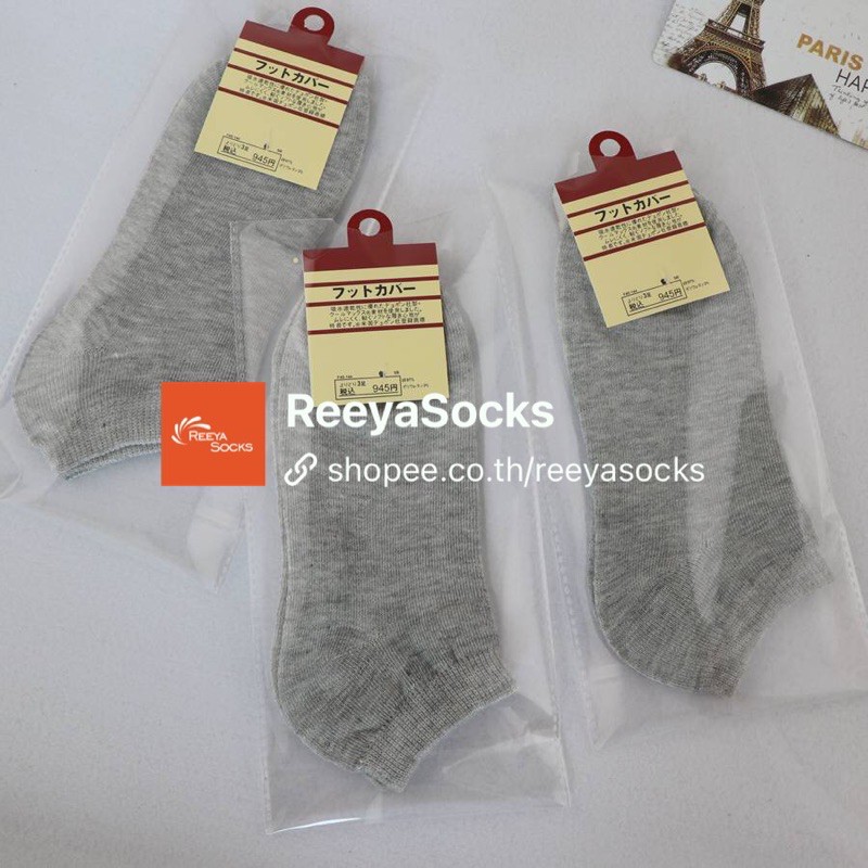 🎉ถุงเท้าข้อสั้นสไตล์ญี่ปุ่นแพคกิ้งเตี่ยว‼️ ระดับตาตุม ขาว ดำ เทา ผ้านิ่ม พร้อมส่ง🚚reeyasocks