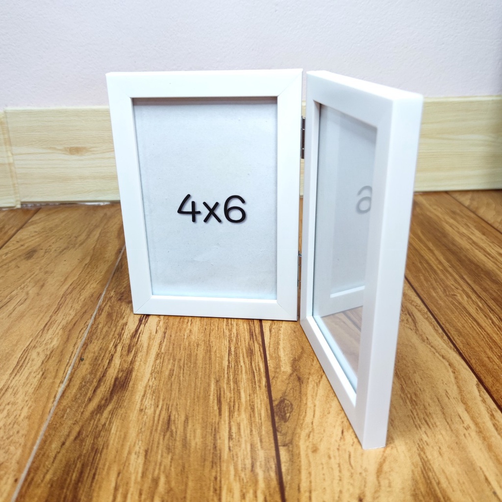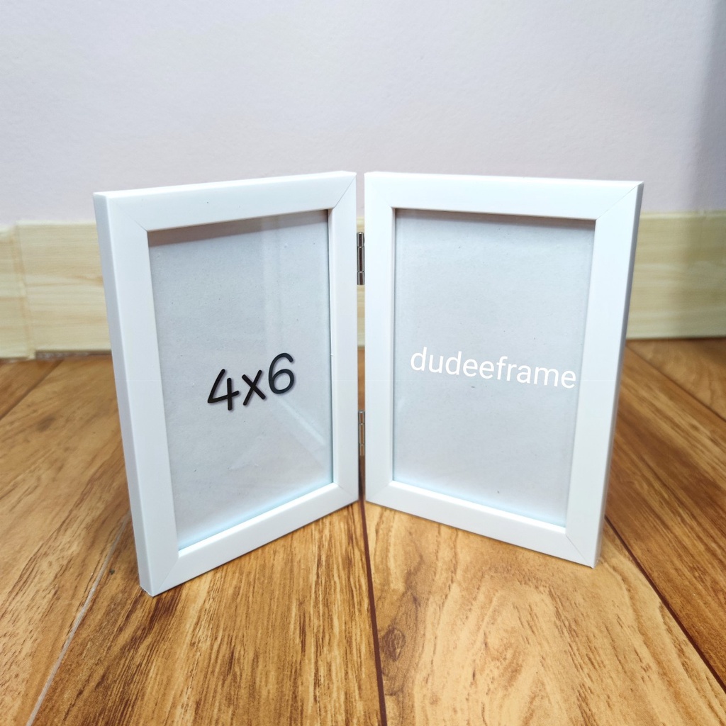 กรอบรูป 4x6 นิ้ว กรอบรูปคู่ 4x6 กรอบรูปสีขาว ขอบหนา0.5นิ้ว (มีกระจก+ขาตั้ง) ของขวัญกรอบรูป