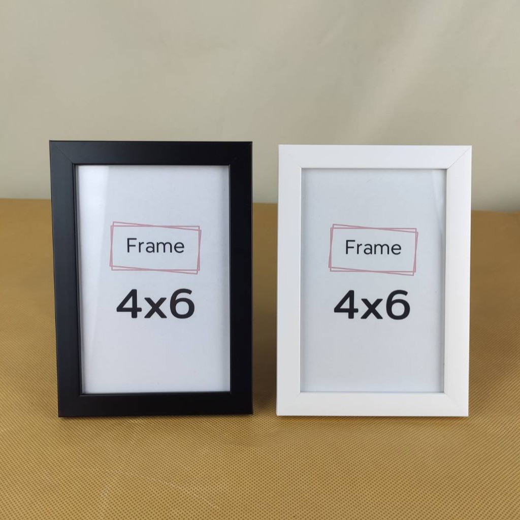 กรอบรูป 4x6 สีขาว สีดำ ขอบหนา 0.5 นิ้ว มีกระจก+ขาตั้ง